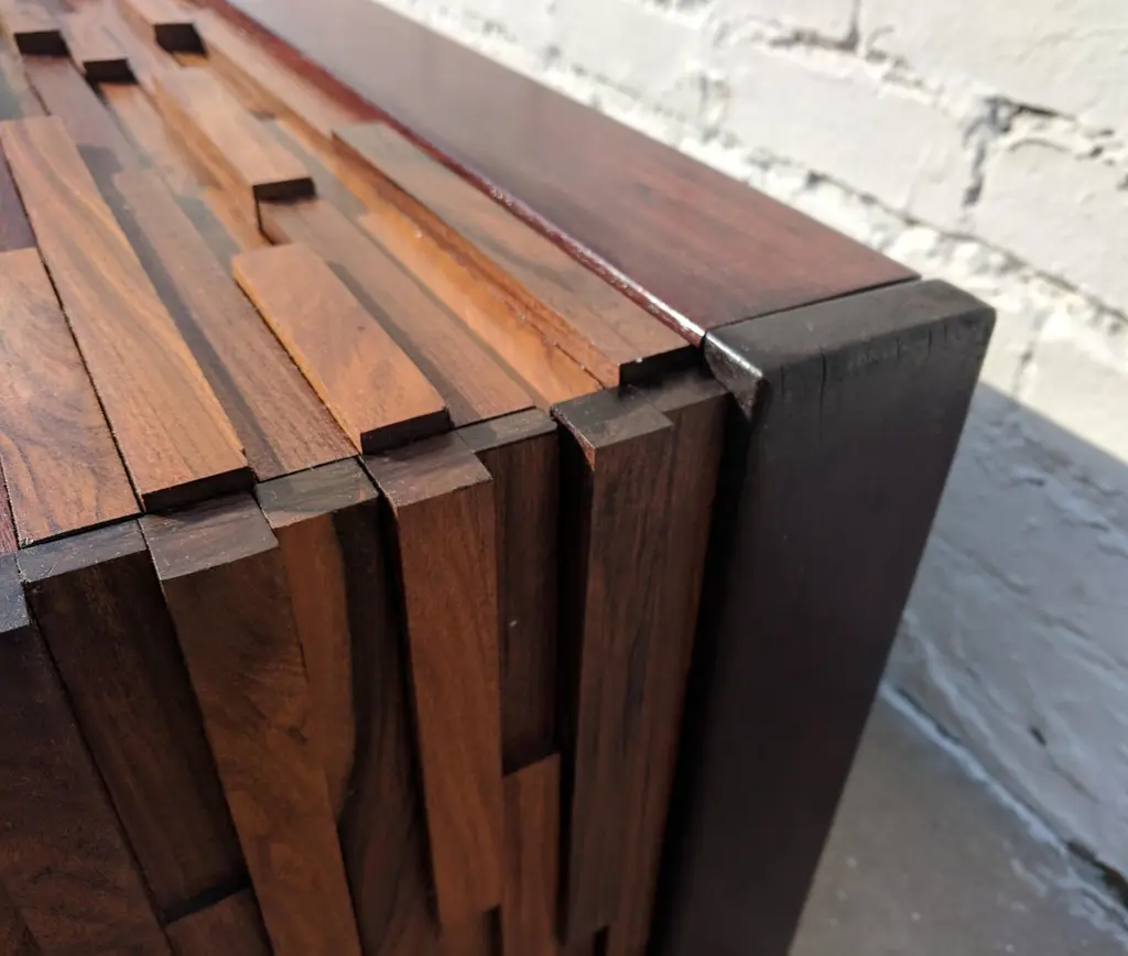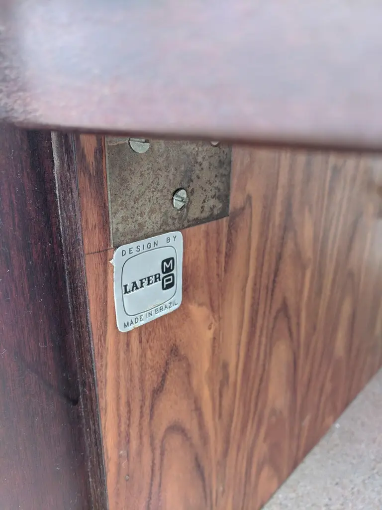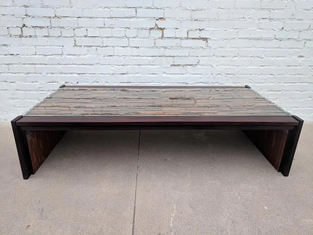 Mid Century Modern Percival Lafer Brutalist Rosewood Coffee TableAbove average condition and structurally sound. Wood is in very good condition. Some small areas with slight fading the wood.Additional information:Materials: Rosewood,Walnut,TeakVintage from the 1960sDimensions: 59 W x 30 D x13.5 H inPercival Lafer is a renowned Brazilian furniture designer, known for his distinctive and innovative contributions to mid-century modern design. Here are some key points about Percival Lafer:1. Early Life and Career: Born in 1936 in Brazil, Percival Lafer began his career in furniture design in the early 1960s. He studied architecture at Mackenzie University in São Paulo, which influenced his approach to furniture design.2. Design Philosophy: Lafer's designs are characterized by their combination of modernist principles with a Brazilian sensibility. He is known for creating furniture that is both functional and aesthetically pleasing, often incorporating ergonomic considerations and unique materials.3. Materials and Craftsmanship: Lafer frequently used high-quality materials such as leather, rosewood, and glass. His craftsmanship is evident in the detailed construction and innovative use of materials, which often include bold and unconventional elements.4. Iconic Pieces: Some of Lafer's most famous designs include his lounge chairs, sofas, and coffee tables. His MP-1 Armchair and MP-97 Sofa are particularly iconic, featuring plush leather upholstery and sturdy wooden frames. These pieces are celebrated for their comfort and distinctive style.5. Innovations: Percival Lafer was known for his innovative approaches to furniture design, including the use of modular systems and integration of new materials and technologies. His work often reflects a blend of industrial and artisanal techniques.6. Legacy and Collectibility: Lafer's furniture remains highly sought after by collectors and enthusiasts of mid-century modern design. His pieces are appreciated for their unique style, comfort, and quality. They continue to be popular in vintage furniture markets and auctions.7. Global Influence: While Lafer's designs are distinctly Brazilian, they have had a global impact and are celebrated worldwide for their originality and influence on modern furniture design.