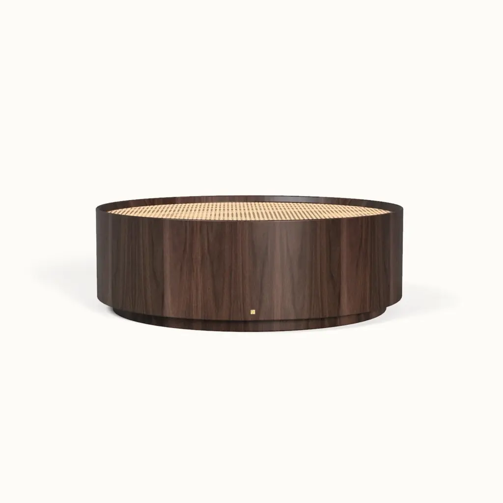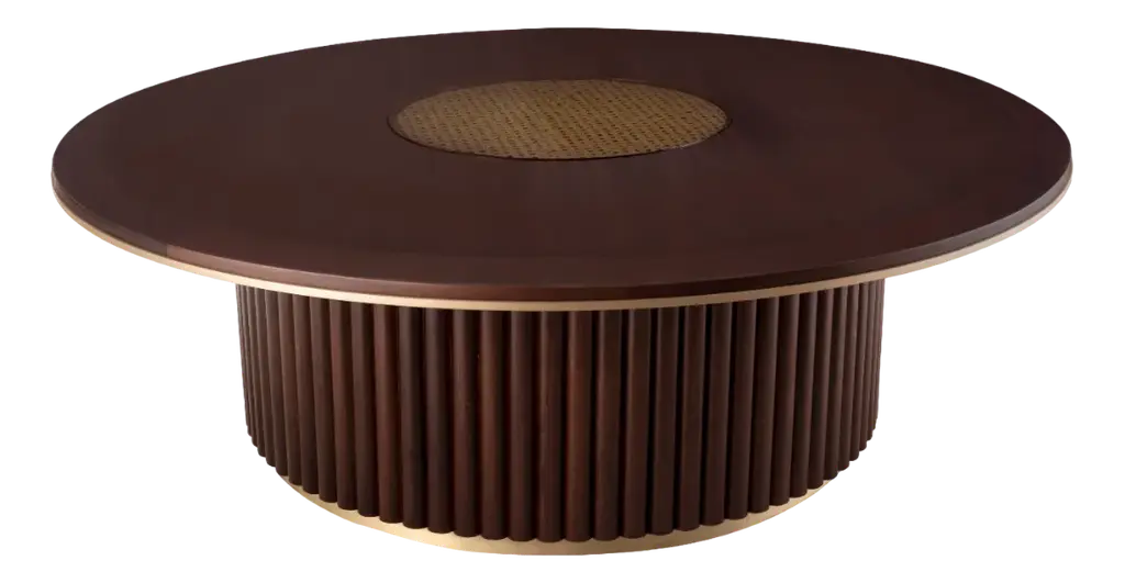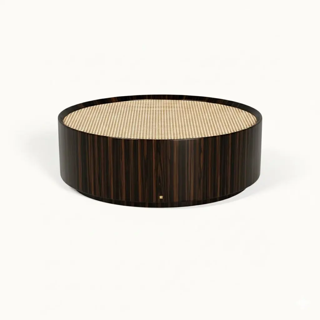 The center table features a rounded form in high gloss ebony Macassar. A recessed base in the same wood ensures a cohesive look, while the tabletop seals the woven rattan with extra-clear glass, creating a refined and sophisticated focal point for any living space.Available in other wood and lacquer finishes.Please contact us if you have any questions about customization and pricing. We will be glad to check with the factory’s technical team if sizes, finishes, and colors can be customized. We do our best to expedite production and to ship and deliver product within the listed lead time, however current lead times might be longer due to global shipping backlog and delays. These delays are out of our control and cannot be a reason to cancel an order.
