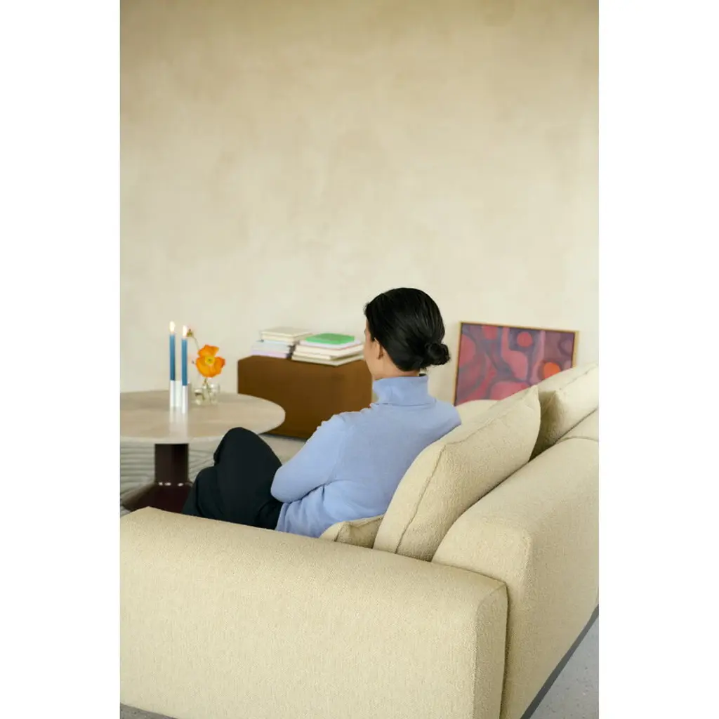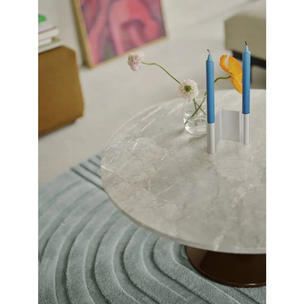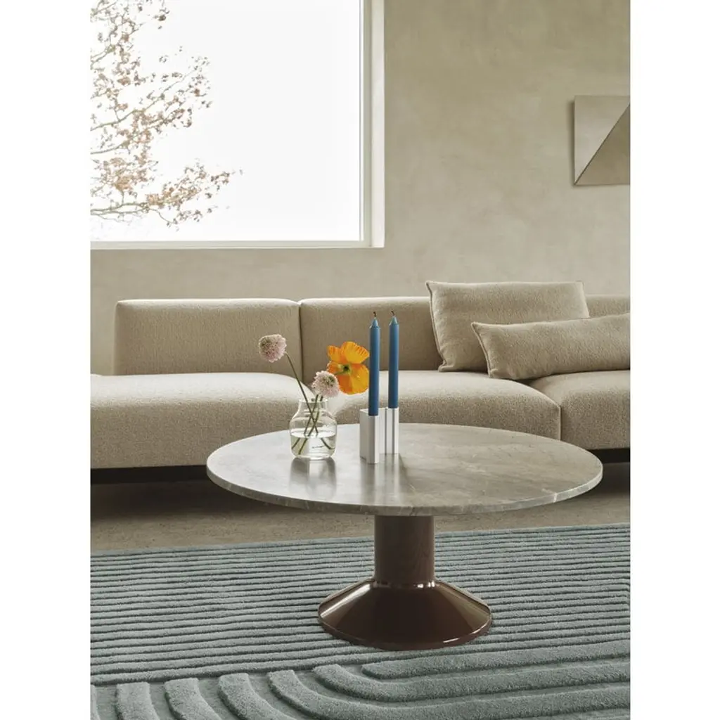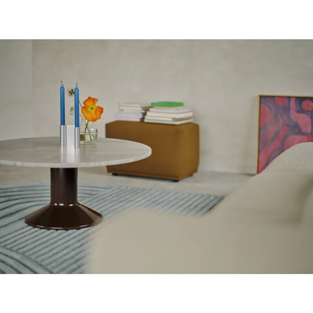 Muuto's Midst coffee table is part of a table collection by TAF Studio that brings together contrasting materials and textures: here, a robust steel base with a high-gloss finish and a marble tabletop with a refined, natural feel. The Midst table’s timeless silhouette blends beautifully into various interiors, while the single-leg construction creates an airy, open impression around it. In addition to being a statement piece in the living room, the durable and solid round marble table is also well-suited for hotels, offices, and other public spaces.