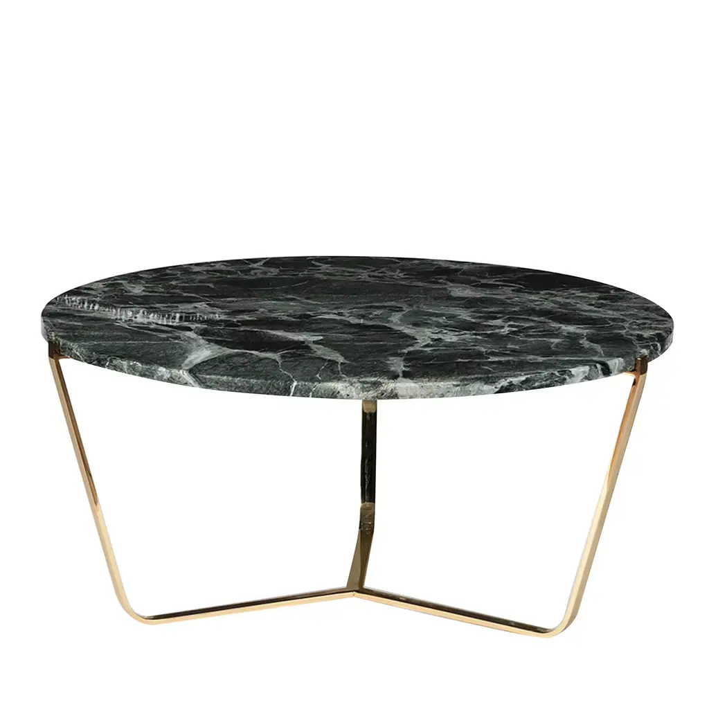 Mileto is a set of coffee tables with a base in satin brass and an Imperial green marble top. It is also available in the total black version with a base and top in black metal. Mileto, in both versions, is available with a round or square tabletop. Mileto, thanks to its design, combines a modern and attractive look with a familiar feel.