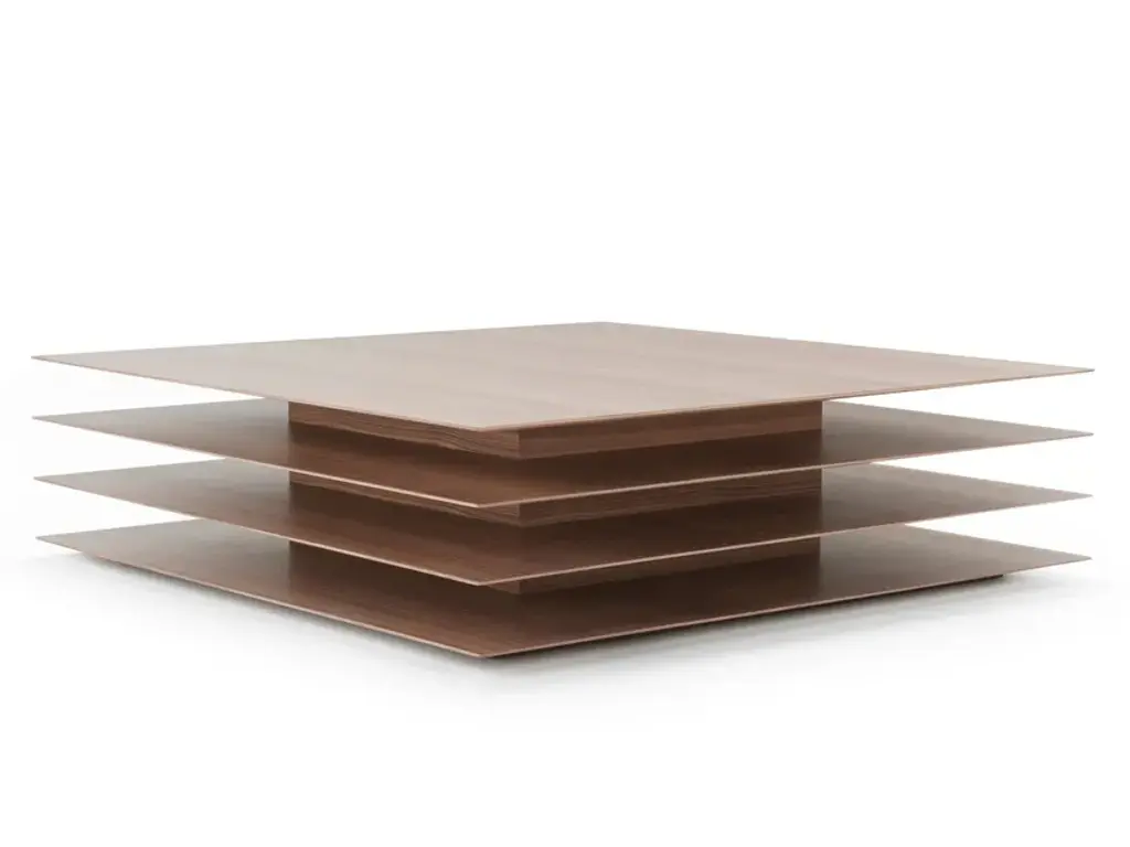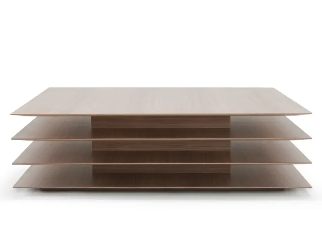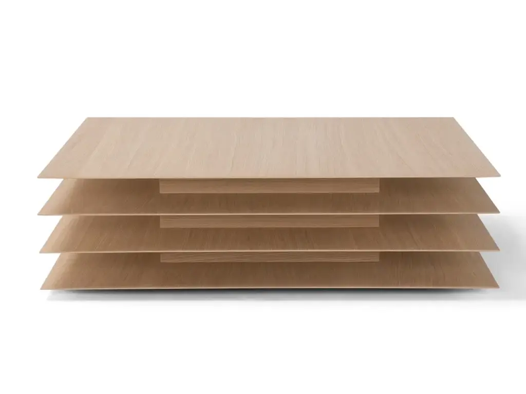 As the famous cake of puff pastry to which it owes its name, the Millefoglie table consists of overlapping levels that create an elegant play of volumes in perfect equilibrium in the space. Lightness and strength fuse together in Millefoglie claiming a central role as a protagonist in the environment in which it is placed. A polished design element that performs the dual function of table top and original bookcase open on four sides. STRUCTURE: MDF and solid wood.