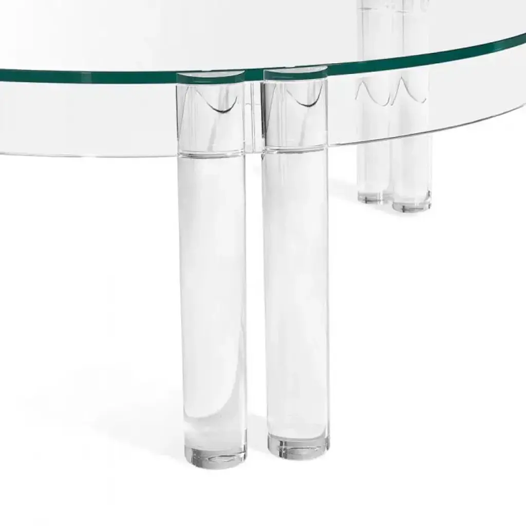 Bringing serious glam to a living space must-have, the acrylic and glass round Milou Cocktail Table makes a unique and chic statement.