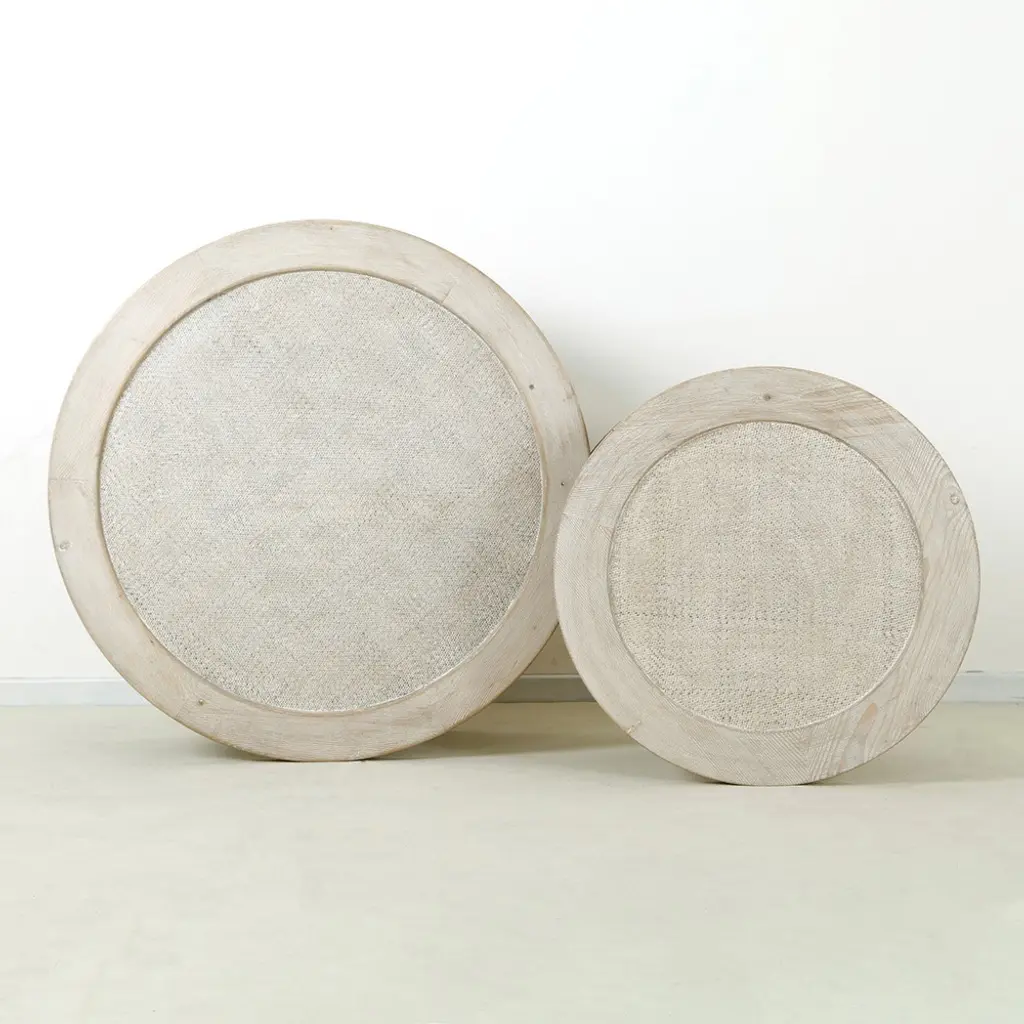 Minnie Coastal Whitewash Pine Wood Woven Rattan 2 Tier Round Coffee Table