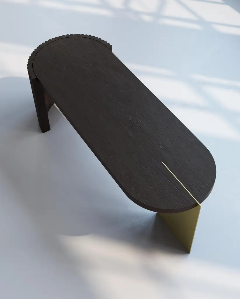 Minus coffee table by Buket Hos¸can Bazman2019Dimensions: W 120, D 42, H 45 cmMaterial: Sandblasted oakwood, hammered brassBuket Hoscan Bazman was born in Izmir, Turkey, in 1989. Graduated at the Isik University and after few years of working in the industry, she founded own design brand under the name “marbleous” in 2015, which produces marble detailed furniture and objects. In 2018, Buket set up her own design studio in Tesvikiye, Istanbul. Currently, she is working for international clients to creating timeless furniture pieces, objects and lights. Buket focused on combining minimal lines with traditional craftsmanship. She mainly uses natural materials such as wood and marble. Each piece is made by craftsmen based in Turkey.Awards 2020 Metamorphosis, Elite Design Award2018 Drop Coffee Table, DIA Award, Shortlisted2017 Urban Furniture Design Competition, Ministry of Environment and Urbanisation2017 Evolve Dining Table, Design Turkey, Good Design Award2017 Drop Coffee Table, A’ Design Award, Golden Award2016 Drop Coffee Table, Design Turkey, Good Design AwardExhibitions 2019 Adorno Crossovers, London Design Fair2018 Design Week POP-UP Exhibition, ECNP Gallery2018 Objects of Desire, ECNP Gallery2018 Genetic Codes of Turkish Design, Design Week Turkey2018 Isola Design District, Milan Design Week2017 Collectible Design, ECNP Gallery2017 Trend Area, Design Week Turkey2017 Design Turkey Area, Design Week Turkey2016 Design Turkey Area, Design Week Turkey.