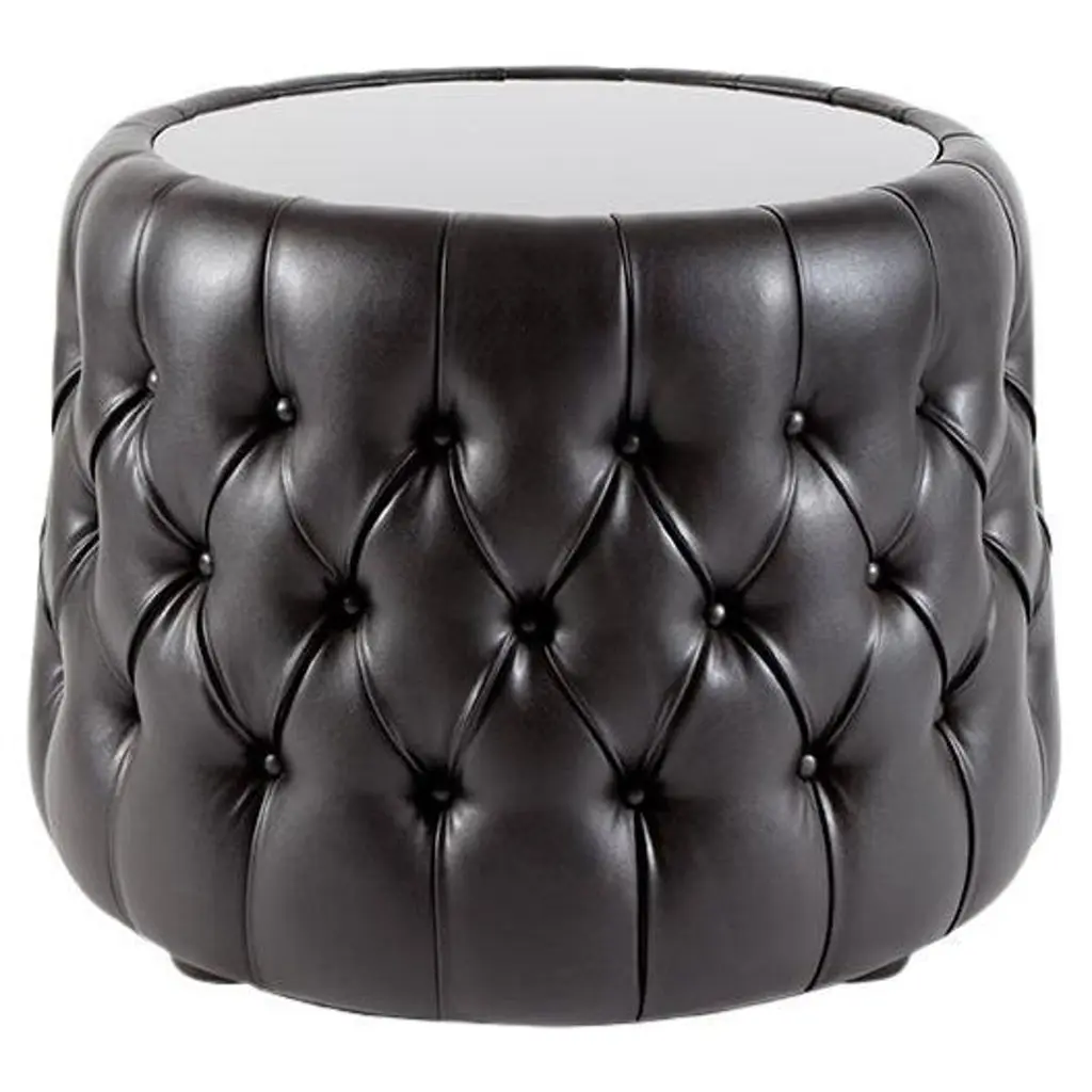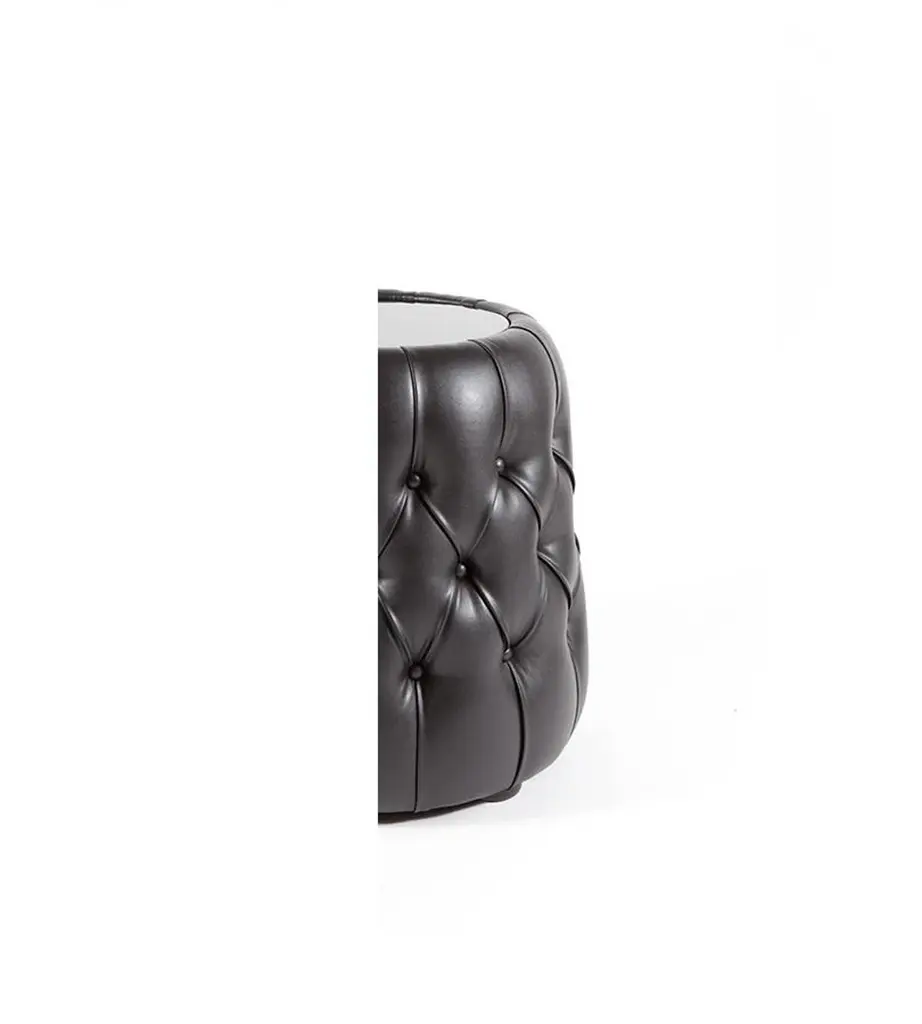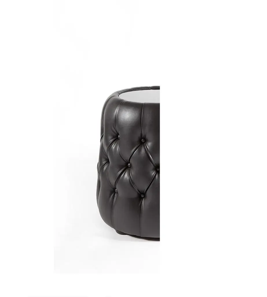Miss Feet 40 Coffee Table by MunnaDimensions: D 50 x W 50 x H 49 cm. SH: 49 cm.Materials: Wood, foam, glass, and leather.Finish: Leather, ref. Black, L06 upholstery. Top: Black lacquered glass.Available in all Munna fabrics except Wild Silk. Available in client’s own material. Top finishes: Upholstered or in Rosewood, Ebony or Walnut veneer, Wengé stain, lacquer in all RAL colors, in matt or gloss, or in lacquer glass in all RAL colors. Handmade in Porto. Please contact us.Established in Porto in 2008, Munna is a furniture design brand renowned for creating handmade upholstery with unmatched craftsmanship, seamlessly blending noble materials and timeless design, for both commercial and residential projects.Made by hand in Porto, Munna’s pieces honor the profound heritage of craftsmanship, while drawing inspiration from history’s most influential artistic periods. Munna’s pieces are made of the finest fabrics such as cotton velvet, twill, leather, and silk; the finest wood veneers, such as ebony, walnut, and rosewood; sumptuous gold, silver, and copper leaves, metal details in brass, nickel, and copper, and superior lacquers.