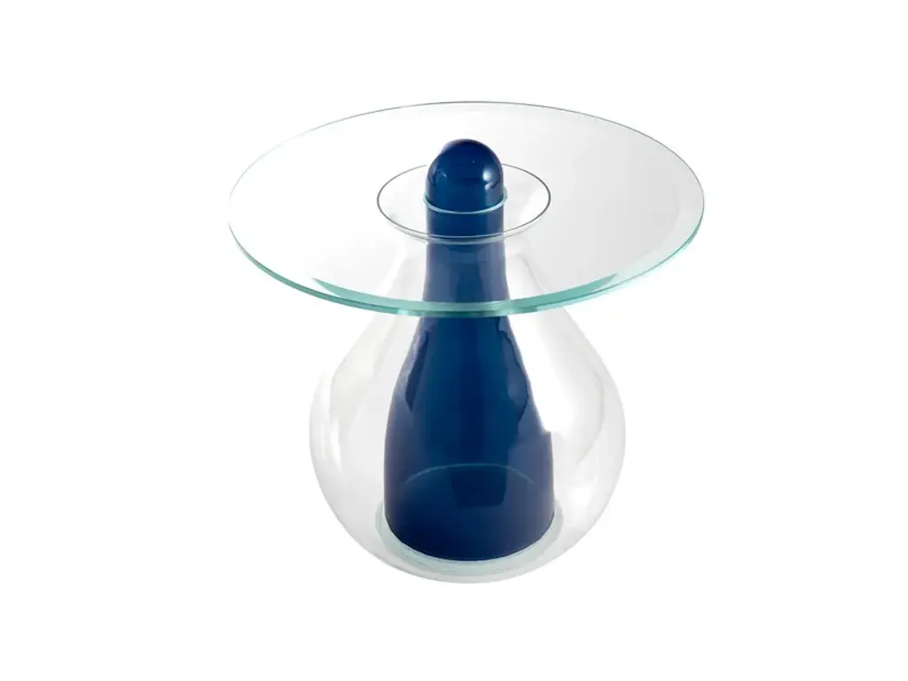 Miya is a typical name from the Japan of a famous samurai. A name chosen for the desire to design a collection of tables that would depict and take inspiration from the armor worn by ancient samurais. Design is basically the result of signs translating and producing surprise and enchantment, an intuition which through development and growth transforms into something unique and sublime.The initial idea, in fact, confronted itself with materials, simplifications and balances, turning into something completely different, probably resembling a flower more than the armor of a warrior. Thus, was born Miya, a sculptural coffee table to be composed in a magical game of juxtapositions.A large transparent glass barrel houses a coloured blown glass structure and an interlocking top made of an extra light crystal plate coupled with coating in the center. There are various combinations giving the object different images, from cobalt blue to emerald green, in a game of total transparencies and vivid shades of colour.Available in two sizes and heights, Miya expresses all Elena Salmistraro’s creative charge of respecting the use of materials combined with a skillful constructive know-how. A service table but above all a main character of the dwelling environment suitable for the most diverse architectural contexts.BASEpolish transparent blown glassUNDERBASEdouble transparent extralight tempered glass plateINTERNAL ELEMENTblown glass available in the two following colors:•emerald green•avio blueTOPtransparent extralight tempered glass plateFEETtransparent silicone rubber
