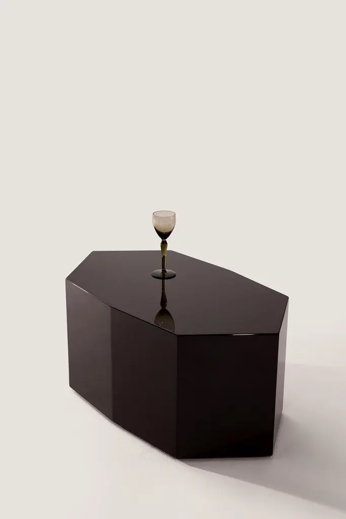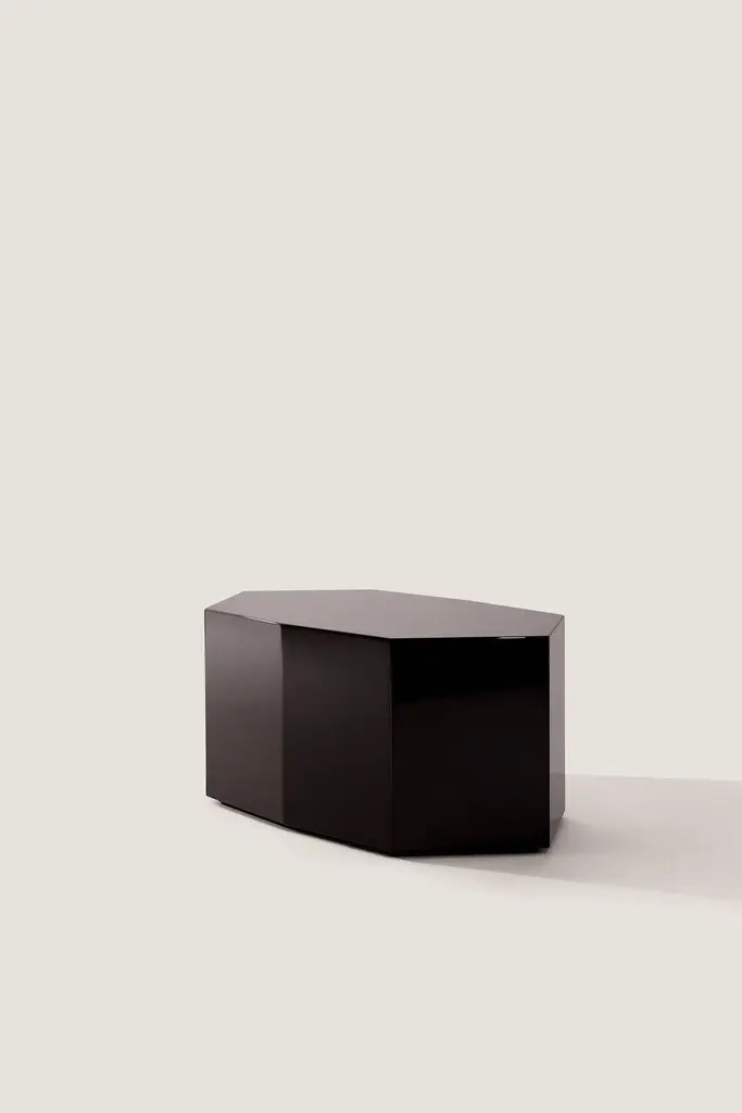 Ame III Coffee Table by Zoe Wolker14.2″ H × 17.3″ W × 31.5″ LDark Chocolate Lacquered MDFA sculptural coffee table that balances bold geometry with everyday functionality. Its lacquered MDF surface reflects light with subtle depth, highlighting the table’s sleek silhouette and refined contours. Designed as both a practical centerpiece and a collectible design object, it embodies the fusion of precision and artistry.The Ame Collection marks Zoé Wolker Studio’s debut in collectible design, launched in 2024. It embodies a dialogue between materiality, form, and perception, where bold geometry meets sleek, reflective surfaces, transforming each piece into an architectural statement. Handcrafted in Portugal, Ame plays with solidity, fluidity, and light, shaping its spatial presence.Custom sizes and finishes available upon request.Lead time for this item is 12-14 weeks.Shipping not included. Please contact us for shipping quotes and customization options.All sales are final.