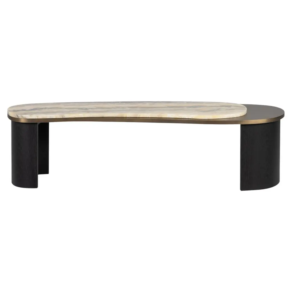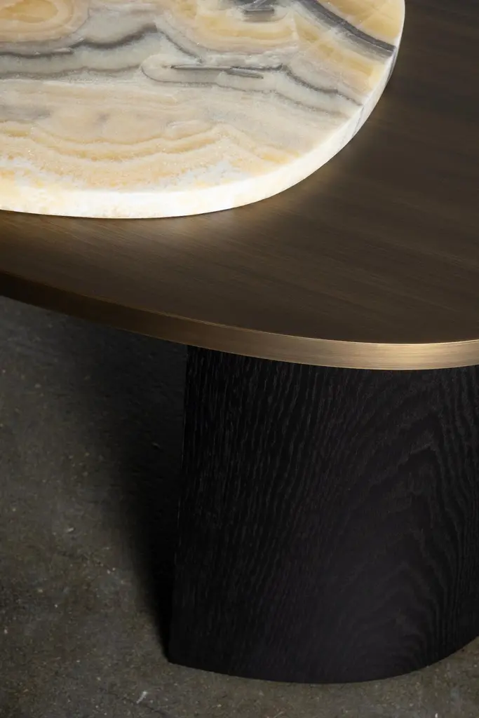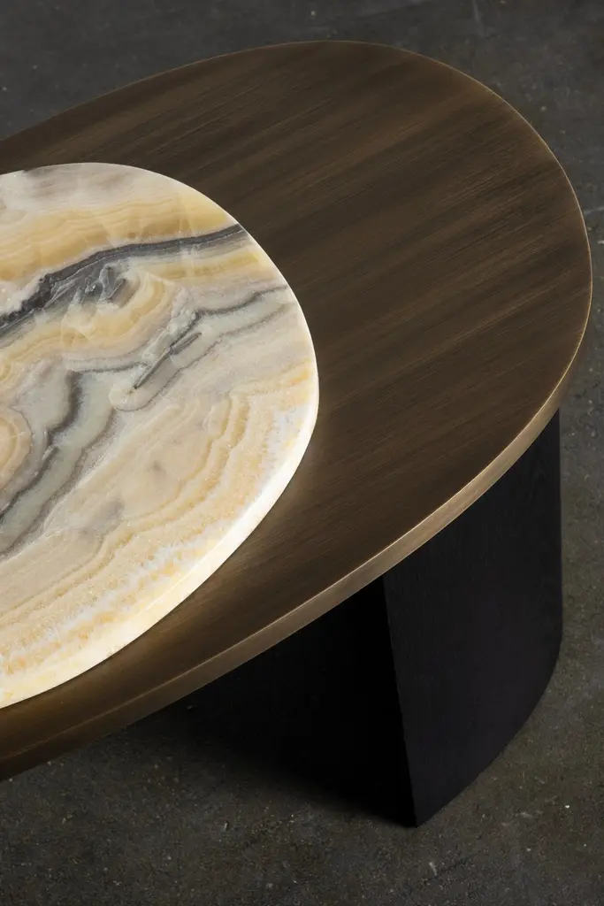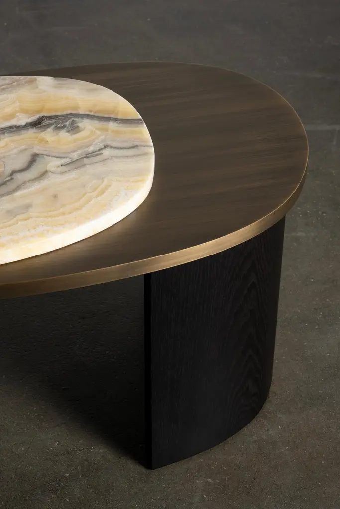 Armona Coffee Table, Contemporary Collection, Handcrafted in Portugal - Europe by Greenapple.Designed by Rute Martins for the Contemporary Collection, the Armona modern coffee table pays homage to the natural beauty and organic lines of Armona island. Meticulously crafted with the utmost attention to detail, Armona combines high-quality materials and timeless design. A modern coffee table designed for today’s living interiors.Armona Coffee Table Material CodesST073 Nilo Onyx; polishedME029 Dark oxidised brass; matt finishWD107 American Oak; open-pore black stained; matt finishHandcrafted in Portugal - Europe by GreenappleUnique by design, Crafted by peopleFounded in 2005 by Sérgio Rebola and Rute Martins, Greenapple designs and produces in-house luxury furniture for exclusive customers worldwide.Our own in-house production facility allows us to be obsessed with detail, and gives us the freedom to dedicate ourselves to the most demanding tailor-made and customized work. As Rute designs all the unique pieces, Sérgio assures the high-quality standards through the whole process - from design to production; from production to your home. Fine craftsmanship, whether perfected by experienced hands or state-of-the-art machinery is quintessential in delivering top quality experiences.