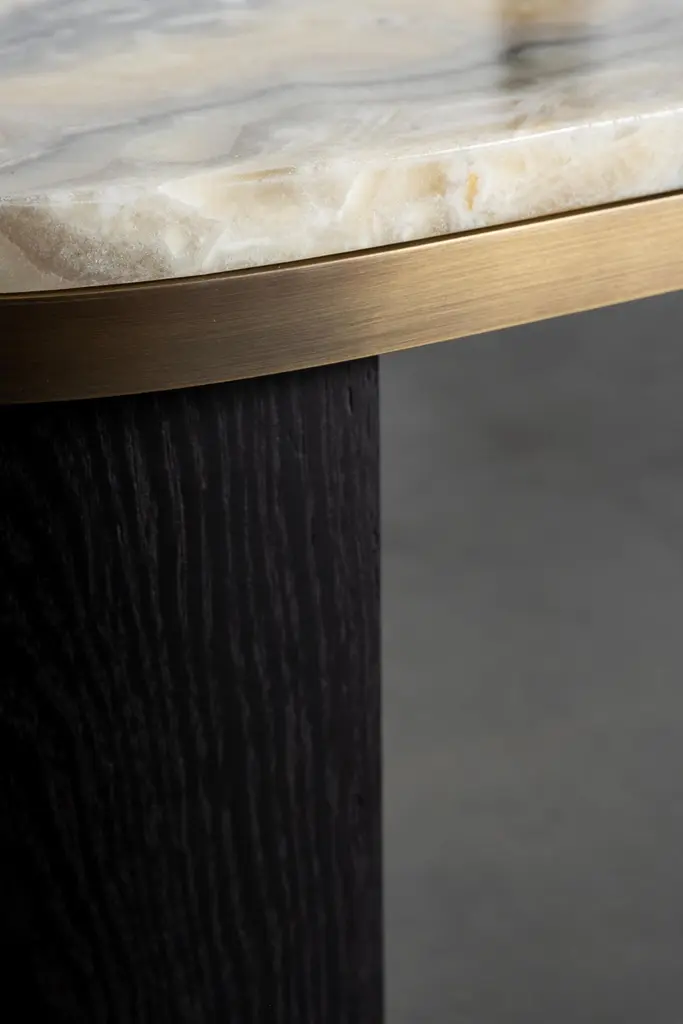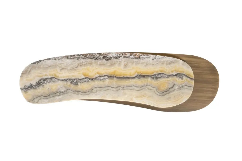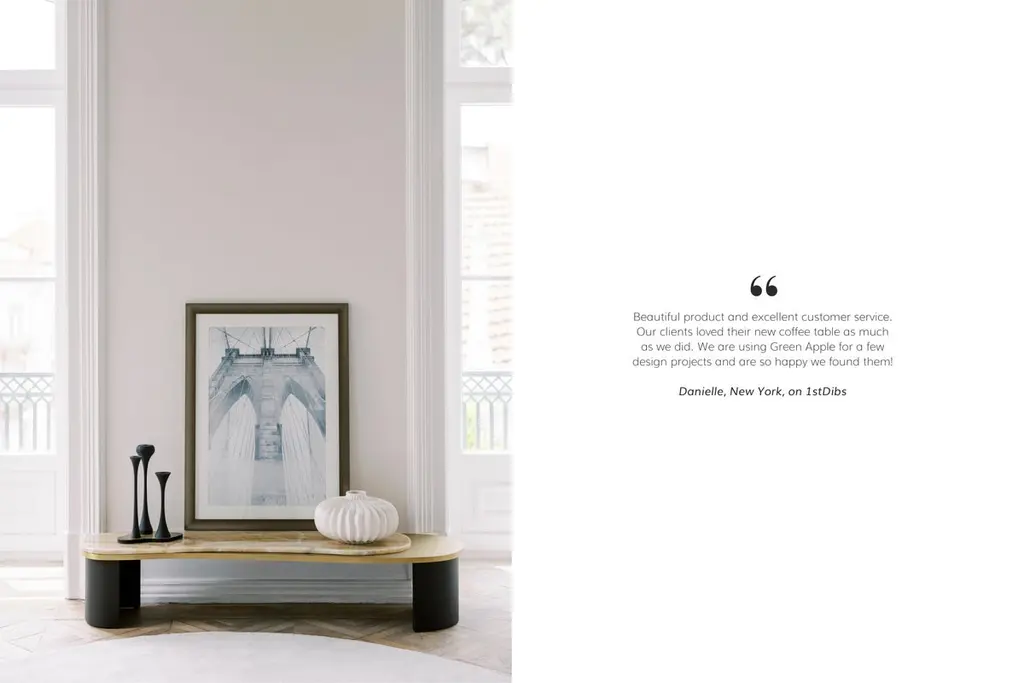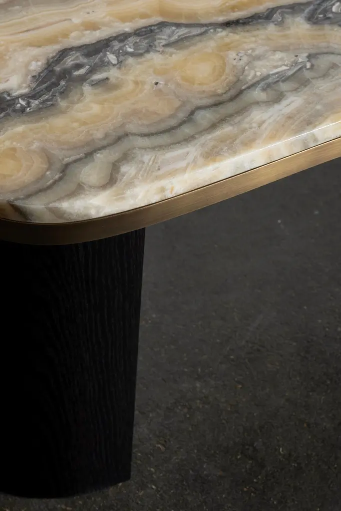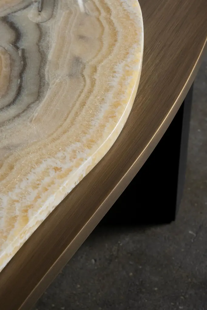 Armona Coffee Table, Contemporary Collection, Handcrafted in Portugal - Europe by Greenapple.Designed by Rute Martins for the Contemporary Collection, the Armona modern coffee table pays homage to the natural beauty and organic lines of Armona island. Meticulously crafted with the utmost attention to detail, Armona combines high-quality materials and timeless design. A modern coffee table designed for today’s living interiors.Armona Coffee Table Material CodesST073 Nilo Onyx; polishedME029 Dark oxidised brass; matt finishWD107 American Oak; open-pore black stained; matt finishHandcrafted in Portugal - Europe by GreenappleUnique by design, Crafted by peopleFounded in 2005 by Sérgio Rebola and Rute Martins, Greenapple designs and produces in-house luxury furniture for exclusive customers worldwide.Our own in-house production facility allows us to be obsessed with detail, and gives us the freedom to dedicate ourselves to the most demanding tailor-made and customized work. As Rute designs all the unique pieces, Sérgio assures the high-quality standards through the whole process - from design to production; from production to your home. Fine craftsmanship, whether perfected by experienced hands or state-of-the-art machinery is quintessential in delivering top quality experiences.