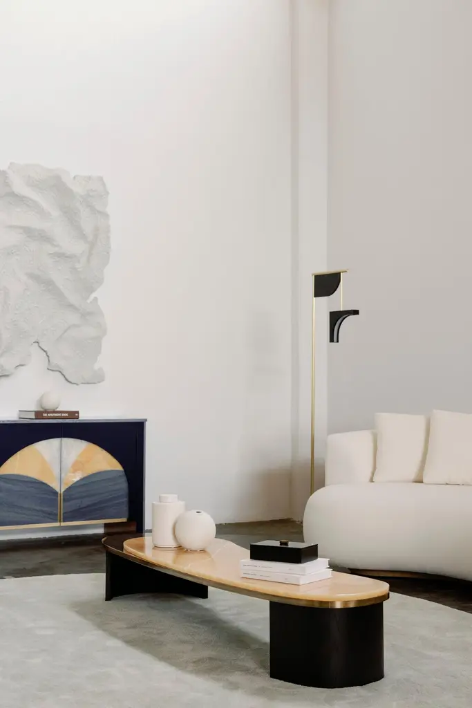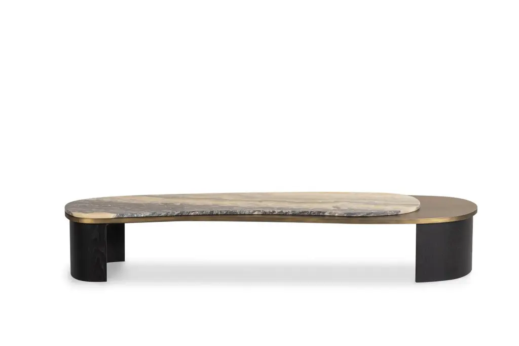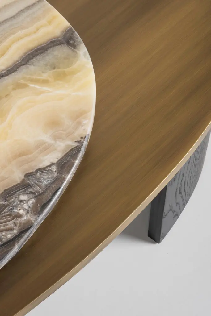 Armona Coffee Table, Contemporary Collection, Handcrafted in Portugal - Europe by Greenapple.Designed by Rute Martins for the Contemporary Collection, the Armona modern coffee table pays homage to the natural beauty and organic lines of Armona island. Meticulously crafted with the utmost attention to detail, Armona combines high-quality materials and timeless design. A modern coffee table designed for today’s living interiors.Armona Coffee Table Material CodesST073 Nilo Onyx; polishedME029 Dark oxidised brass; matt finishWD107 American Oak; open-pore black stained; matt finishHandcrafted in Portugal - Europe by GreenappleUnique by design, Crafted by peopleFounded in 2005 by Sérgio Rebola and Rute Martins, Greenapple designs and produces in-house luxury furniture for exclusive customers worldwide.Our own in-house production facility allows us to be obsessed with detail, and gives us the freedom to dedicate ourselves to the most demanding tailor-made and customised work. As Rute designs all the unique pieces, Sérgio assures the high-quality standards through the whole process - from design to production; from production to your home. Fine craftsmanship, whether perfected by experienced hands or state-of-the-art machinery is quintessential in delivering top quality experiences.