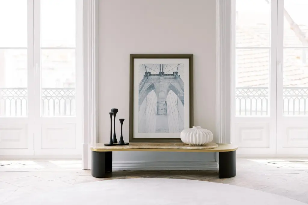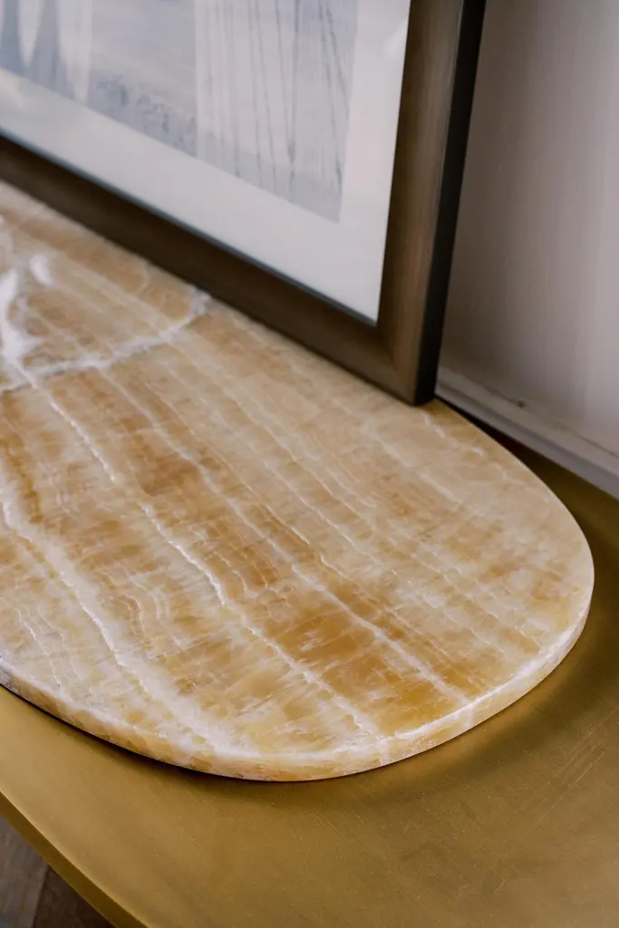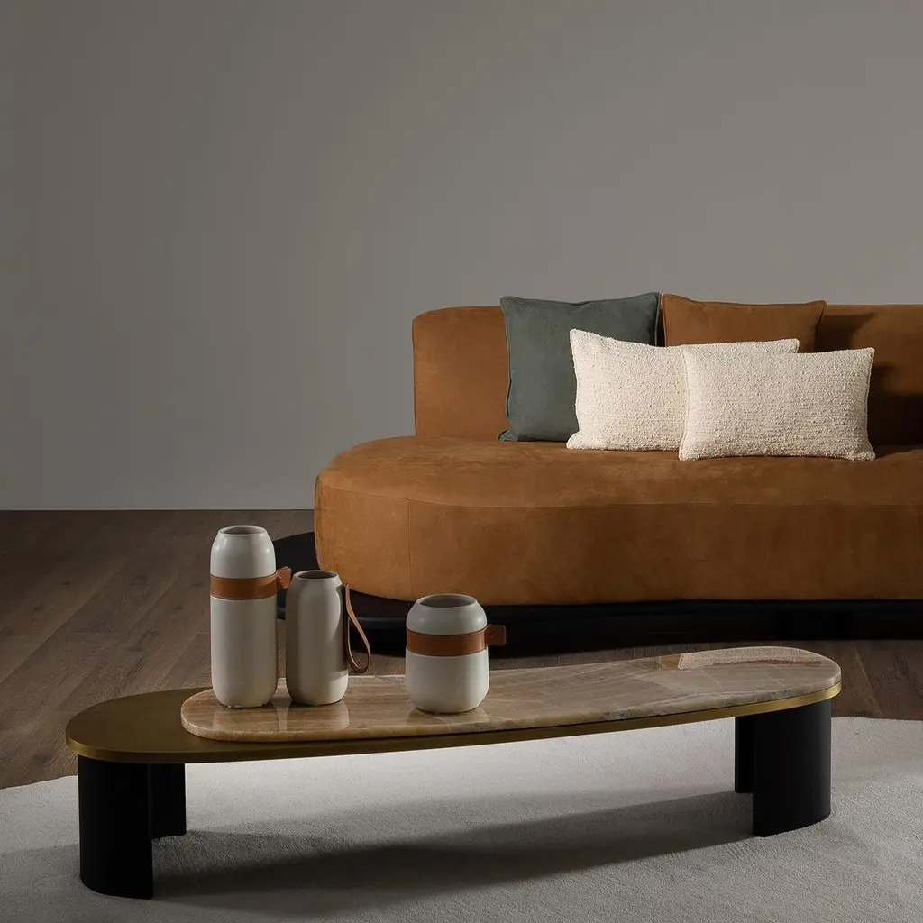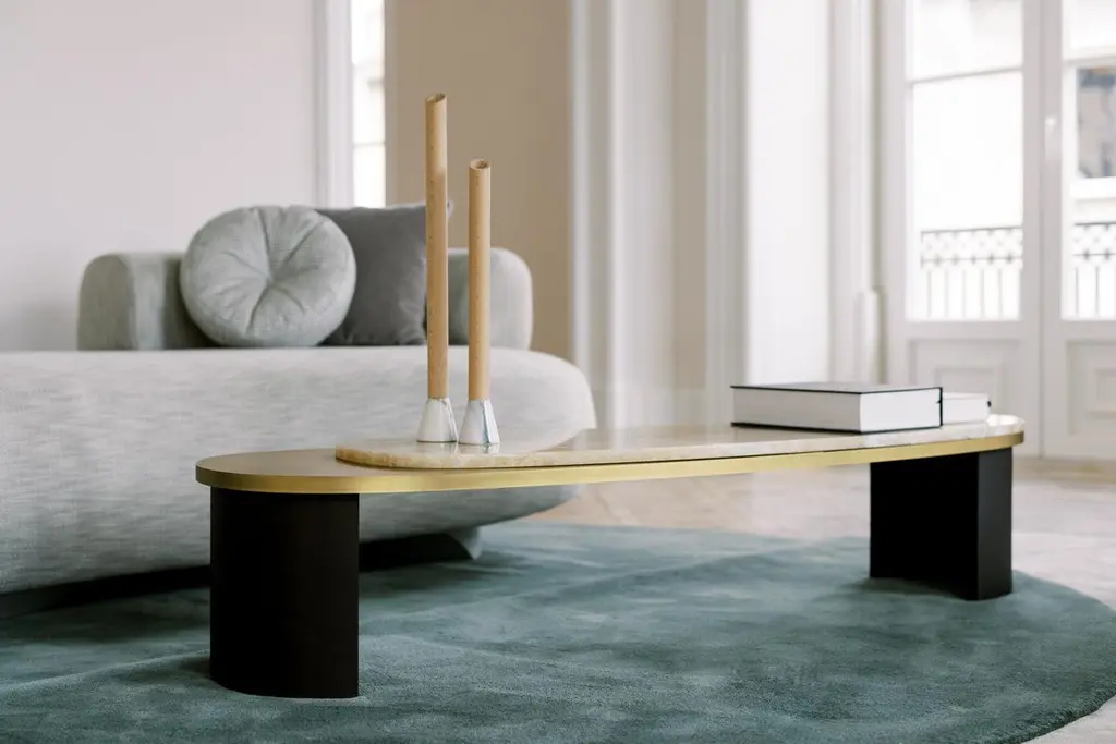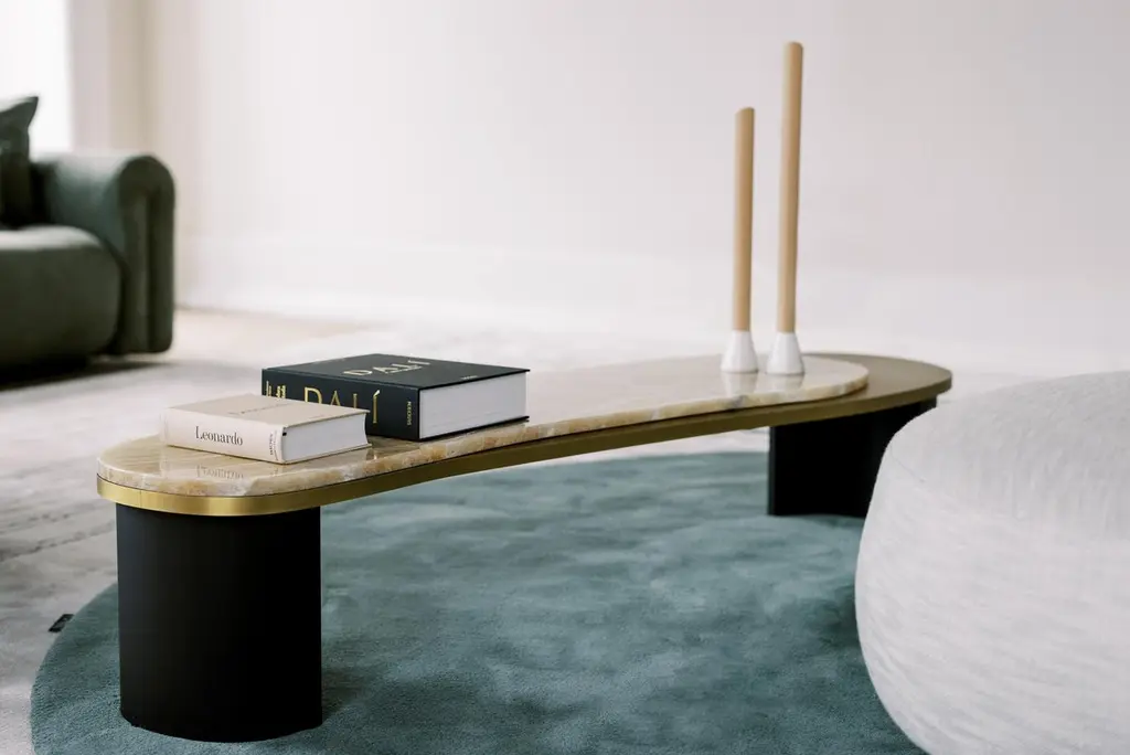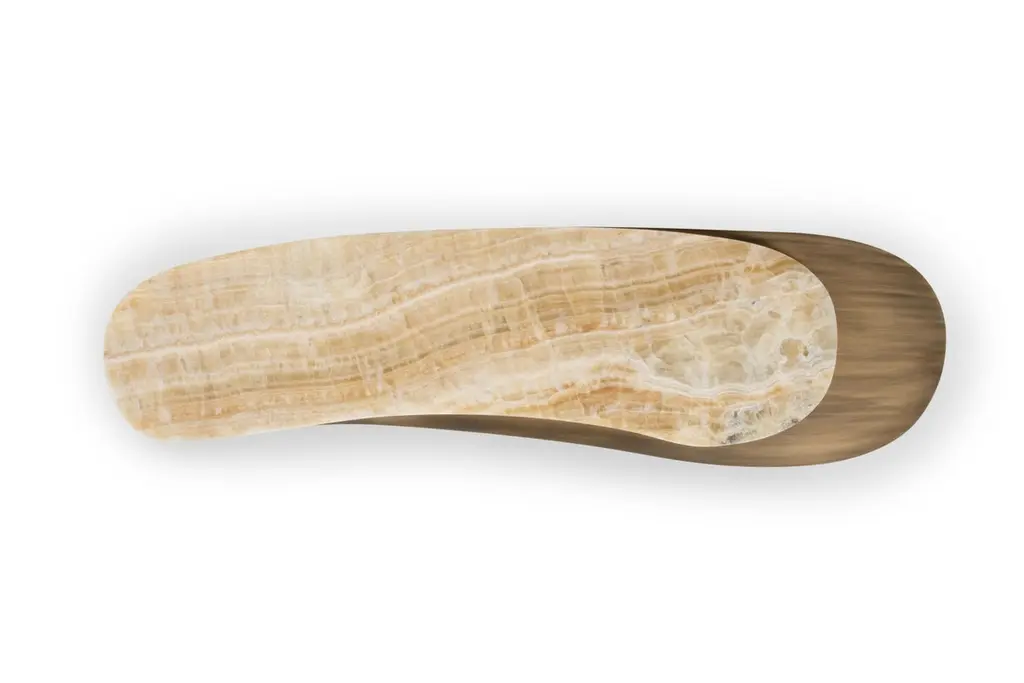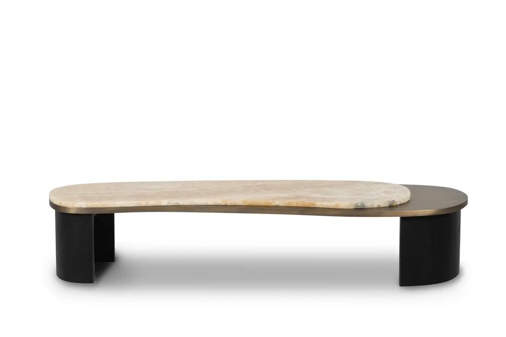 Armona Coffee Table, Contemporary Collection, Handcrafted in Portugal - Europe by Greenapple.Designed by Rute Martins for the Contemporary Collection, the Armona modern coffee table pays homage to the natural beauty and organic lines of Armona island. Meticulously crafted with the utmost attention to detail, Armona combines high-quality materials and timeless design. A modern coffee table designed for today’s living interiors.Armona Coffee Table Material CodesWD107 American oak; open-pore black stained; matt finishME029 Dark oxidised brass; matt finishST003 Shadow onyx; polishedHandcrafted in Portugal - Europe by GreenappleUnique by design, Crafted by peopleFounded in 2005 by Sérgio Rebola and Rute Martins, Greenapple designs and produces in-house luxury furniture for exclusive customers worldwide.Our own in-house production facility allows us to be obsessed with detail, and gives us the freedom to dedicate ourselves to the most demanding tailor-made and customised work. As Rute designs all the unique pieces, Sérgio assures the high-quality standards through the whole process - from design to production; from production to your home. Fine craftsmanship, whether perfected by experienced hands or state-of-the-art machinery is quintessential in delivering top quality experiences.