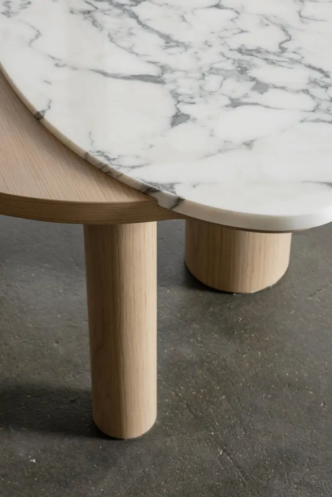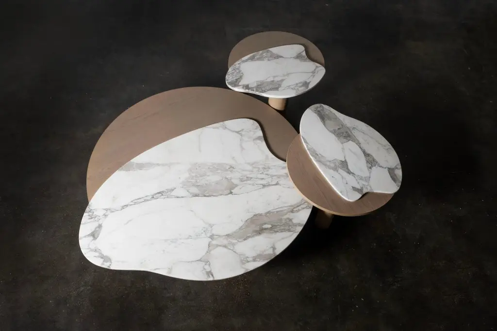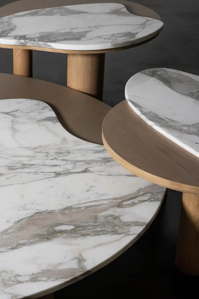 Bordeira Coffee Tables, Contemporary Collection, Handcrafted in Portugal - Europe by Greenapple.Designed by Rute Martins for the Contemporary Collection, the Bordeira coffee table was designed to add the essence of nature into the interior space by reimagining the captivating lines of Bordeira beach in a furniture piece. Through the sweeping curves, ocean meets the land in perfect harmony, creating a coffee table that conveys true freedom of movement.Bordeira combines fine craftsmanship and noble materials, becoming a Greenapple best-seller and a favorite piece among designers.Bordeira Coffee Tables Material CodesWD158 American oak; warm-grey stained; matt finishST066 Calacatta Strong Vein marble; polishedHandcrafted in Portugal - Europe by GreenappleUnique by design, Crafted by peopleFounded in 2005 by Sérgio Rebola and Rute Martins, Greenapple designs and produces in-house luxury furniture for exclusive customers worldwide.Our own in-house production facility allows us to be obsessed with detail, and gives us the freedom to dedicate ourselves to the most demanding tailor-made and customized work. As Rute designs all the unique pieces, Sérgio assures the high-quality standards through the whole process - from design to production; from production to your home. Fine craftsmanship, whether perfected by experienced hands or state-of-the-art machinery is quintessential in delivering top quality experiences.