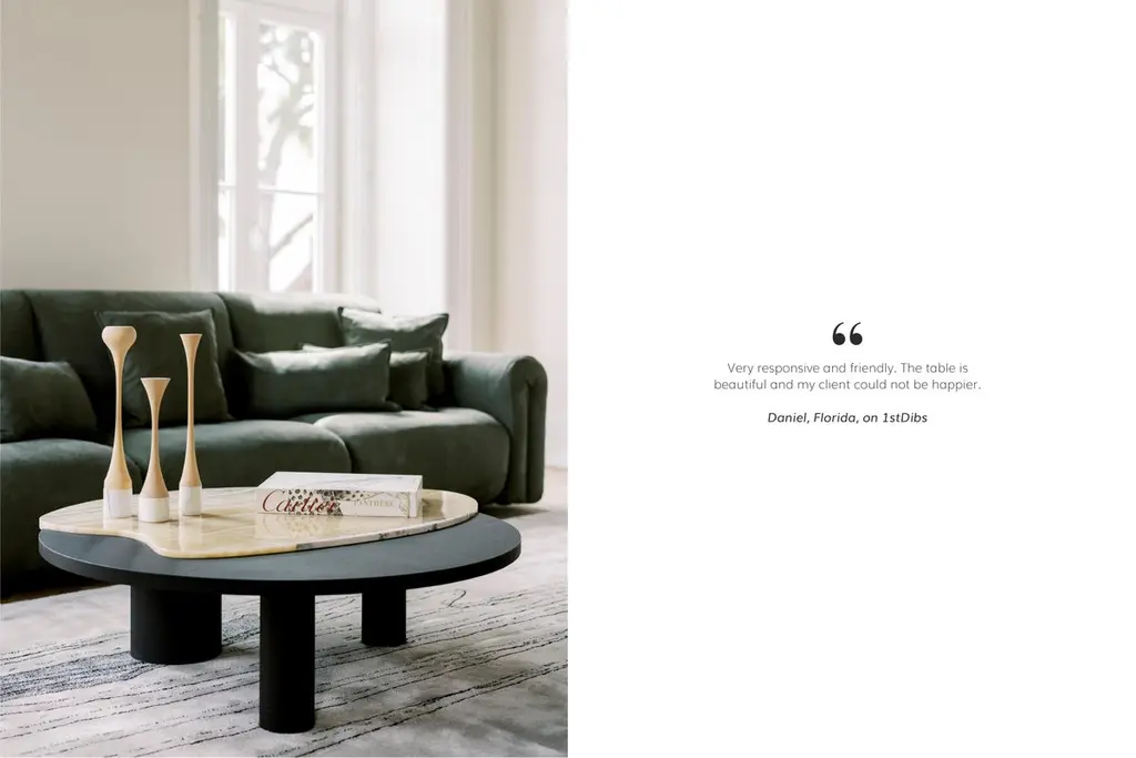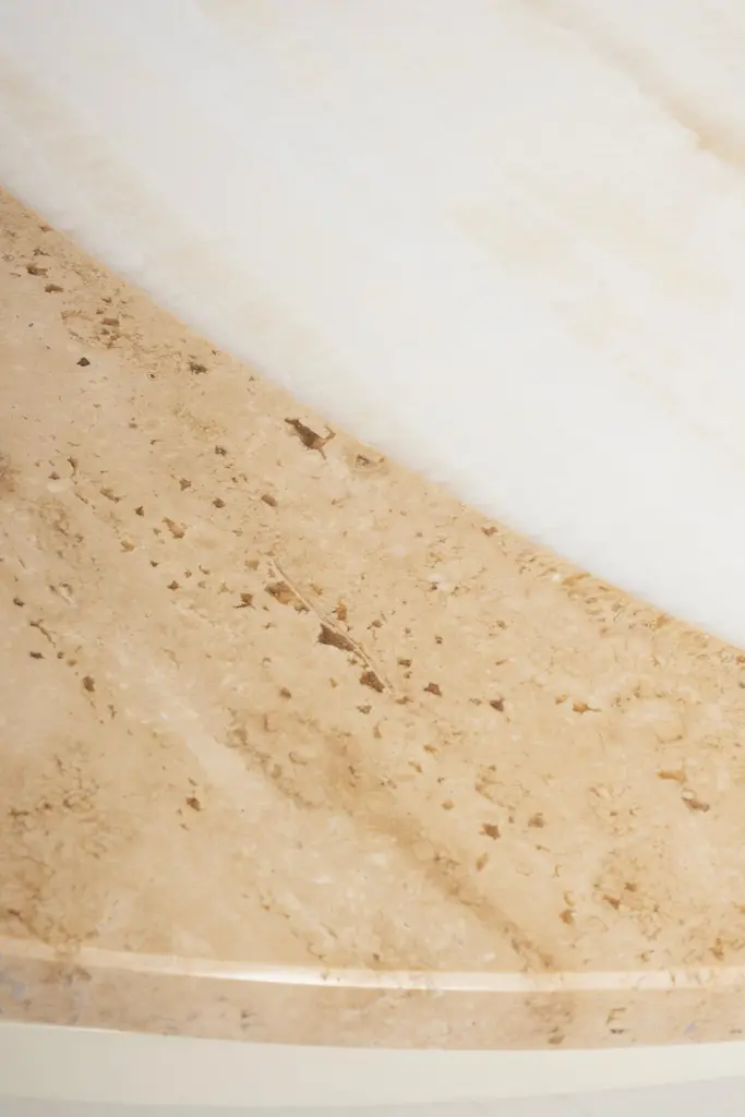 Bordeira coffee table, Contemporary Collection, handcrafted in Portugal - Europe by Greenapple.Designed by Rute Martins for the Contemporary Collection, the Bordeira modern coffee table was designed to add the essence of nature into the interior space by reimagining the captivating lines of Bordeira beach in a furniture piece. Through the sweeping curves, ocean meets the land in perfect harmony, creating a modern coffee table that conveys true freedom of movement.Bordeira combines fine craftsmanship and noble materials, becoming a Greenapple’s best-seller and a favorite piece among designers.Bordeira coffee table material codesFI176 Oyster white lacquer; semi glossST059 White Onyx; polishedST065 Travertine marble;Handcrafted in Portugal - Europe by GreenappleUnique by design, Crafted by peopleFounded in 2005 by Sérgio Rebola and Rute Martins, Greenapple designs and produces in-house luxury furniture for exclusive customers worldwide.Our own in-house production facility allows us to be obsessed with detail, and gives us the freedom to dedicate ourselves to the most demanding tailor-made and customized work. As Rute designs all the unique pieces, Sérgio assures the high-quality standards through the whole process - from design to production; from production to your home. Fine craftsmanship, whether perfected by experienced hands or state-of-the-art machinery is quintessential in delivering top quality experiences.