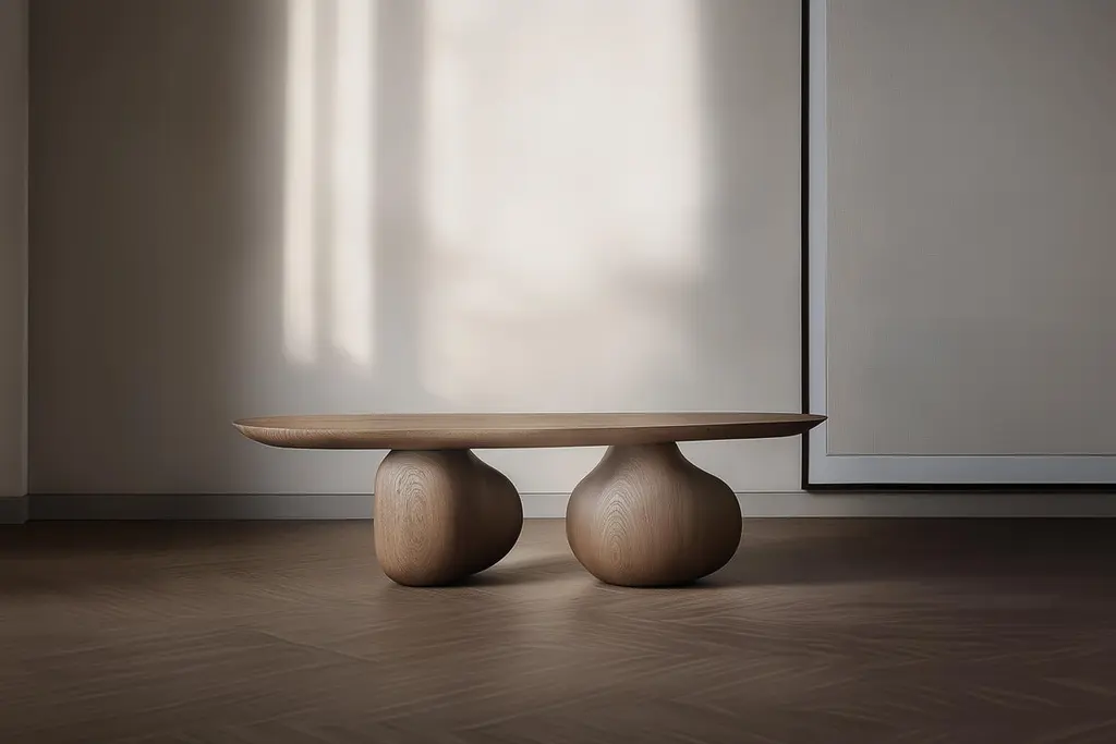 Modern Center Table Serie 56 – Sereno by Joel Escalona for Contemporary Spaces———Sereno Coffee Table Series – A Note from Joel EscalonaWhat happens when structure becomes art?These are the questions that guided me in designing the Sereno Coffee Table Series. I wanted to create pieces where beauty wasn’t just about what you see on the surface but also about how things come together—the hidden elements that often go unnoticed but are essential to balance and harmony.With Sereno, the story lies beneath. The tabletop is minimal and clean, but the legs—sculpted like soft, wooden pebbles—are the soul of the design. These organic shapes are carefully placed to support the structure, giving the table a subtle presence, as if it’s effortlessly floating just above the ground. Each pebble leg is different, creating a sense of individuality that reflects the natural variations found in the world around us.For this collection, I chose to work exclusively with solid wood because I believe in the honest beauty of natural materials. You can select red oak with a natural finish, or explore tinted variations to match your space. For those seeking a richer expression, walnut or white oak are available as premium options. Each piece feels tactile, solid, and timeless—something you’ll want to touch and live with every day.The Sereno Coffee Tables come in a range of shapes—round, oval, or rectangular—designed to complement any environment. Whether your space is minimal or eclectic, these tables will feel at home without demanding attention. They’re complete as they are, with or without objects, bringing a sense of calm wherever they are placed.With Sereno, my goal was to create pieces that embody balance, simplicity, and subtle artistry—tables that feel meaningful not because they are heavily adorned, but because they are thoughtfully crafted. At the heart of this collection is the belief that great design doesn’t need to shout; it just needs to feel right.I hope these tables bring a sense of quiet beauty to your home, transforming ordinary moments into something extraordinary.—NONO is a Mexican design brand with more than 10 years of experience dedicated to the production of interior furnishings, editions, and custom-made projects. At NONO, we create pieces of extraordinary beauty, accommodating the particular needs and tastes of each client with exclusive high-quality designs.————Some details to consider when placing an order with us:• Catalog images are digitally generated. Actual products may slightly vary in texture, grain, and final finish due to natural material differences. Despite these variations, our expertise ensures each piece maintains high quality and matches the intended design.• All of our products are made to order, and the lead time for standard products is estimated to be 9 to 12 weeks, plus shipping time. However, special pieces or sculptures may require a longer lead time.• We offer customization in dimensions and finish for all of our furniture pieces, which may result in additional charges.• We only facilitate freight services by a third party. The client is solely responsible for any associated import/export taxes, as well as any necessary customs paperwork.• We are not responsible for any damages that may occur during shipping or for any customs-related delays.
