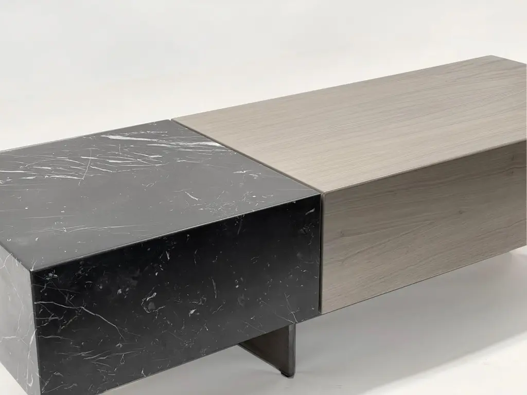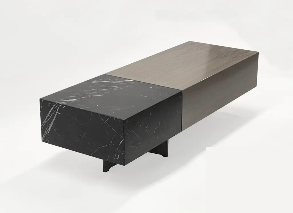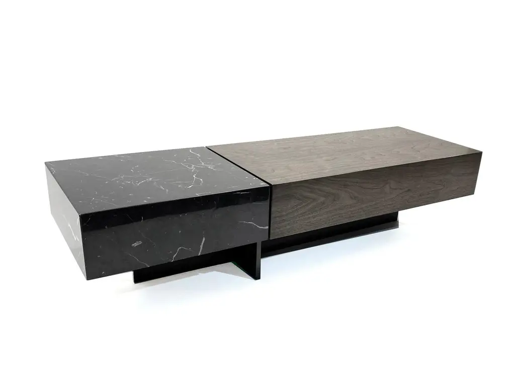 Modern Cocktail Table In Ebonized Walnut With Vanilla Noir Ceasarstone