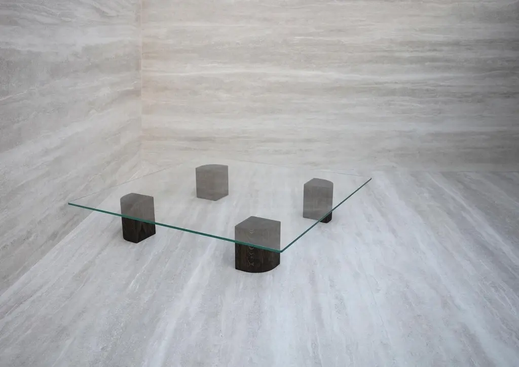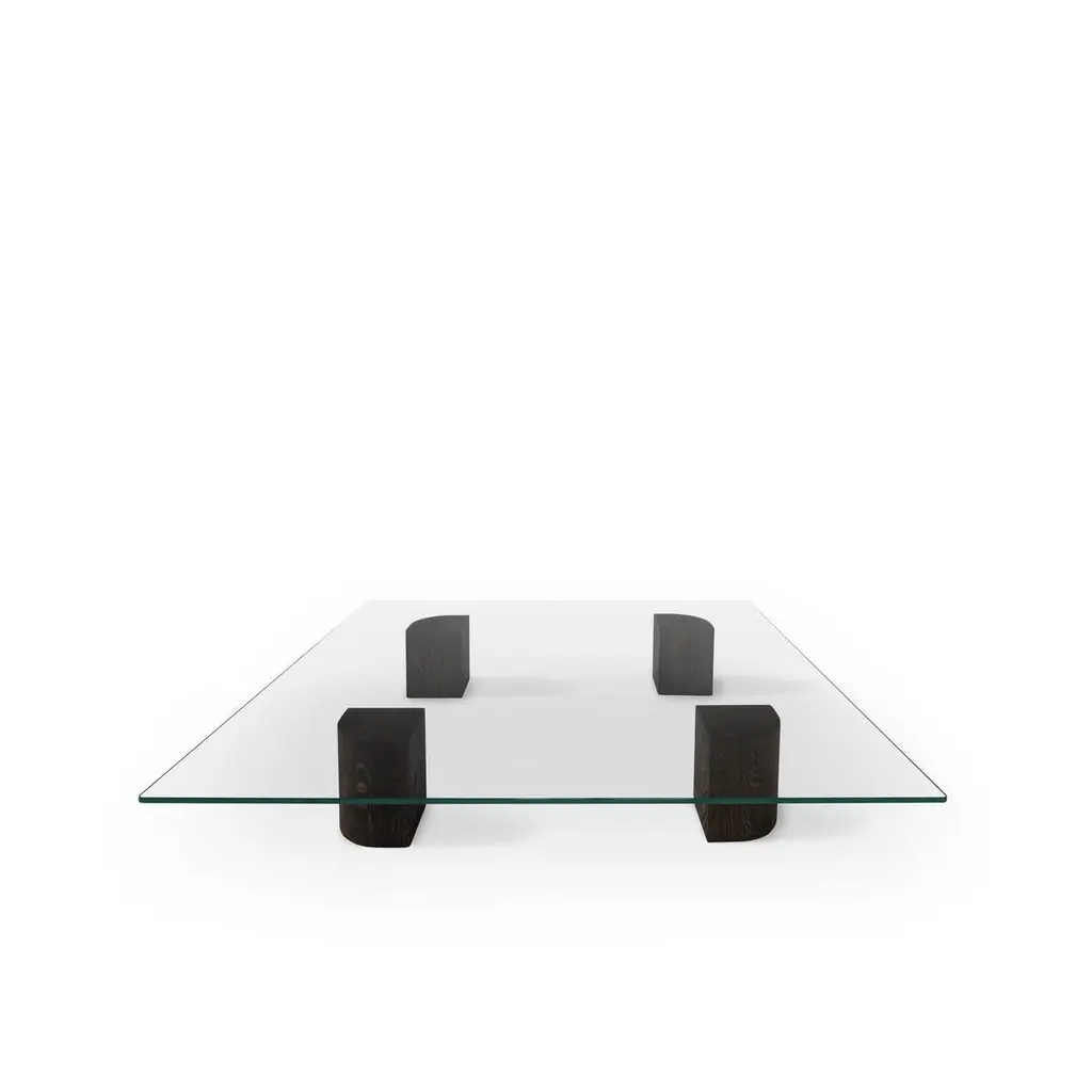 Modern Coffee Table 'Quarter', Square Glass Top, Smoked Oak, Low