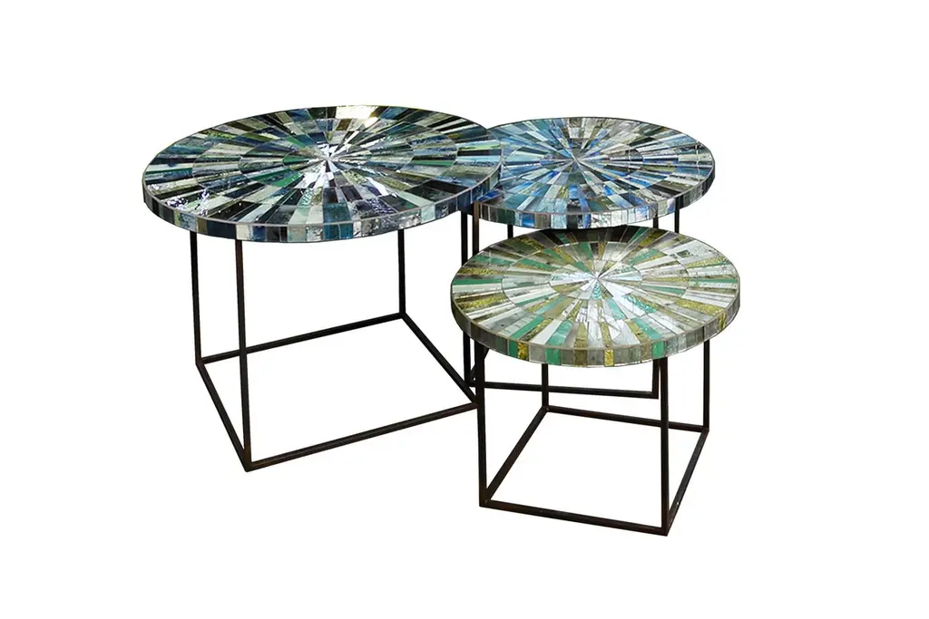 Modern Eglomise Glass Mosaic Round Aqua Coffee Table By Ercole Home