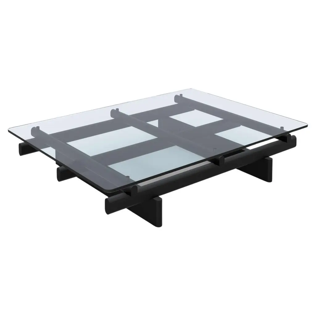 Modern Industrial Coffee Table By Peter Harrison, Glass, Metal And Black Wood