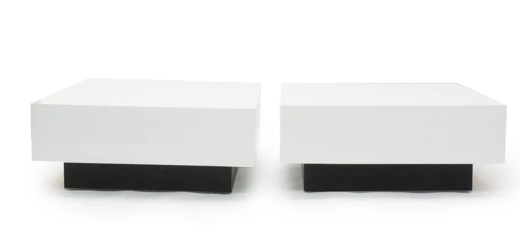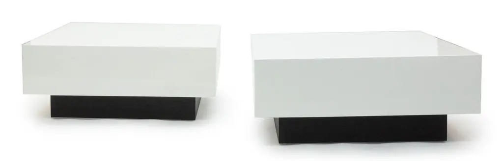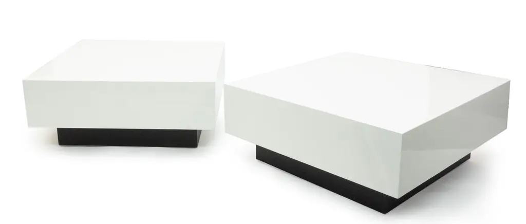 Our square modern coffee table has a white lacquered top and a wenge wood recessed base. Size and lacquer color are customizable. Made in our Connecticut workshop. Sold as a set but can be purchased individually.Measurements:36" Sq x 15.5" HCustomization may effect price. Allow 6 weeks for production on custom orders.