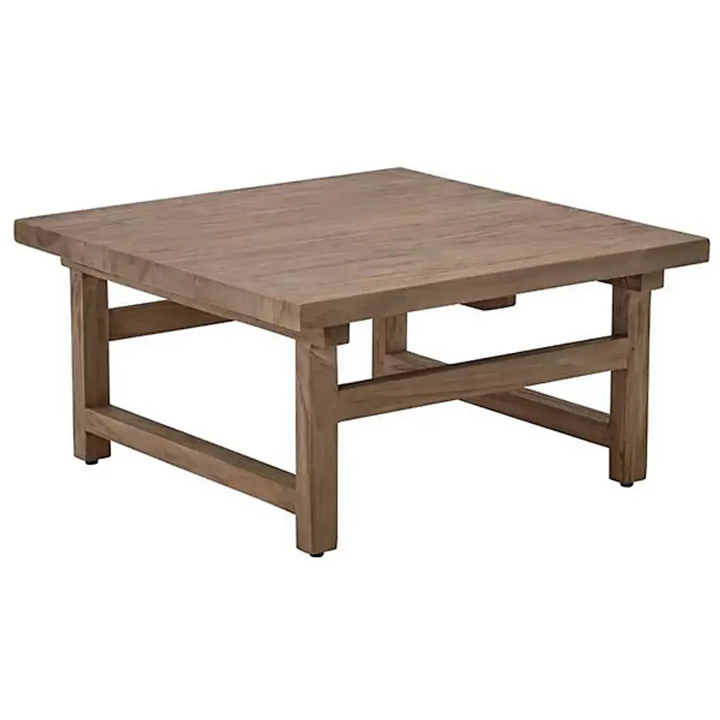 Inspired by Ming Dynasty furniture dating back to the 16th century, this square coffee table is made of oak, a hardwood prized as much for its distinctive grain as for its durability and scratch-resistance. The limewash finish shows off the grain to perfection.