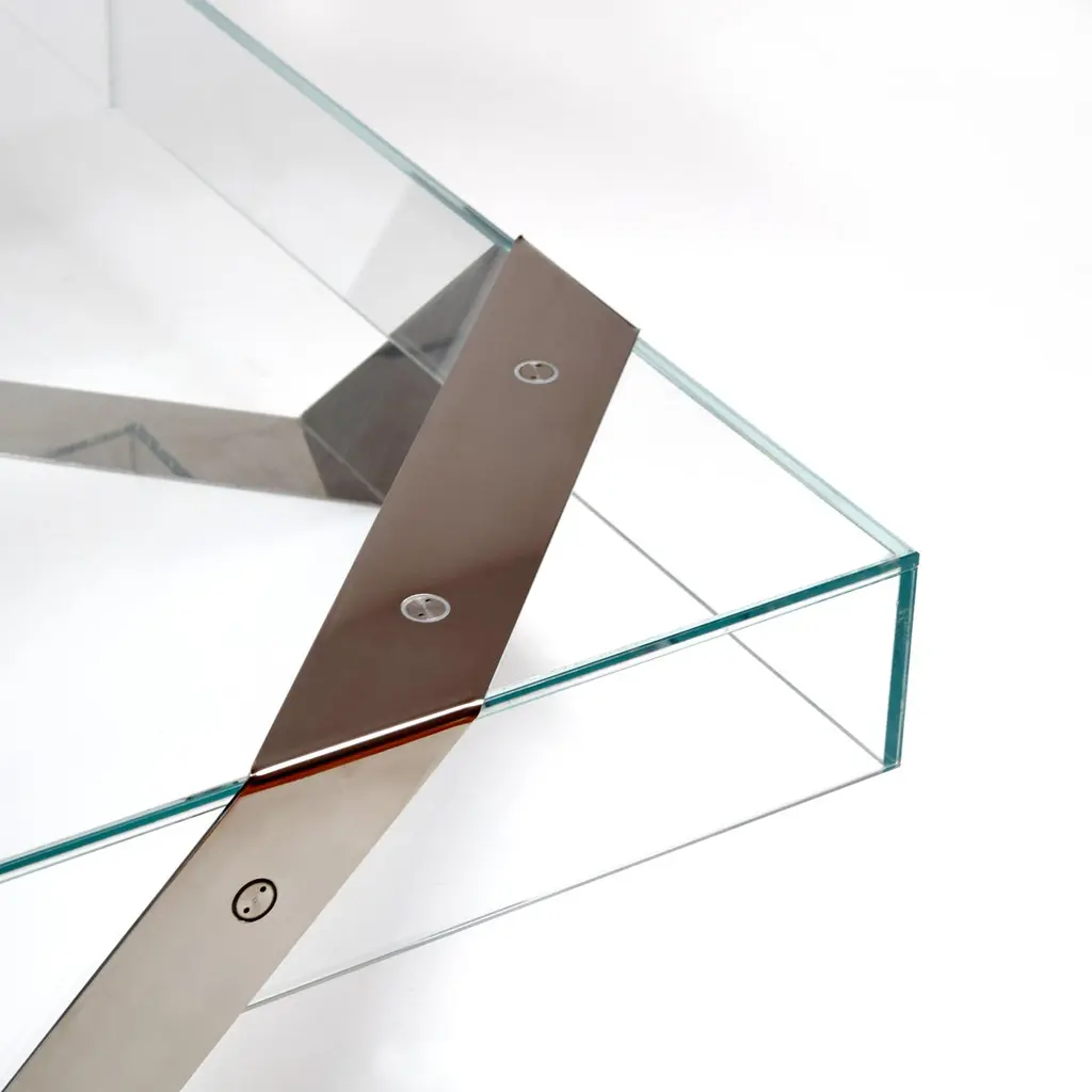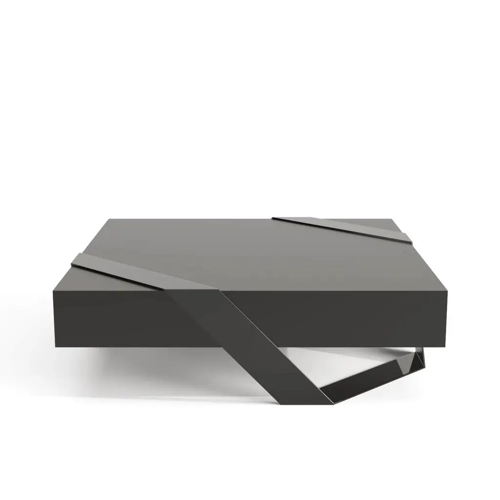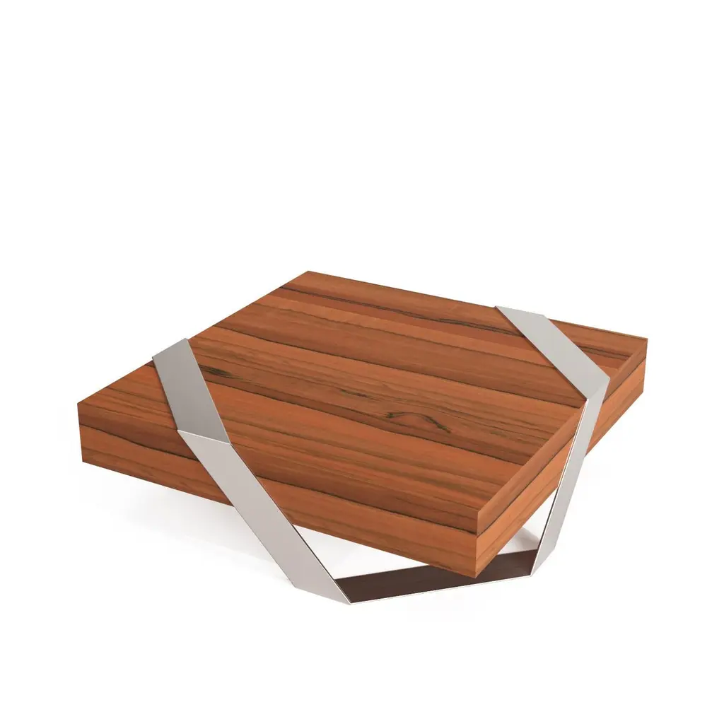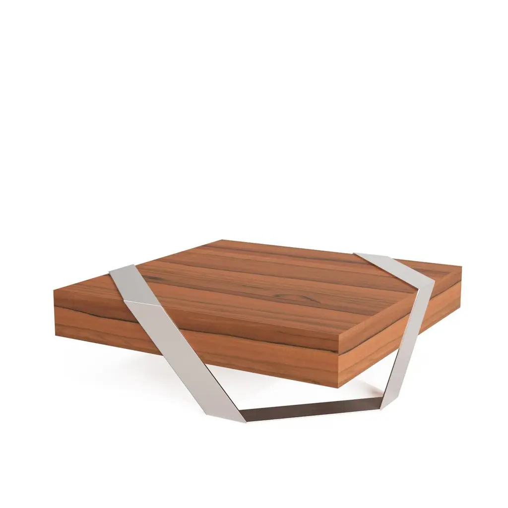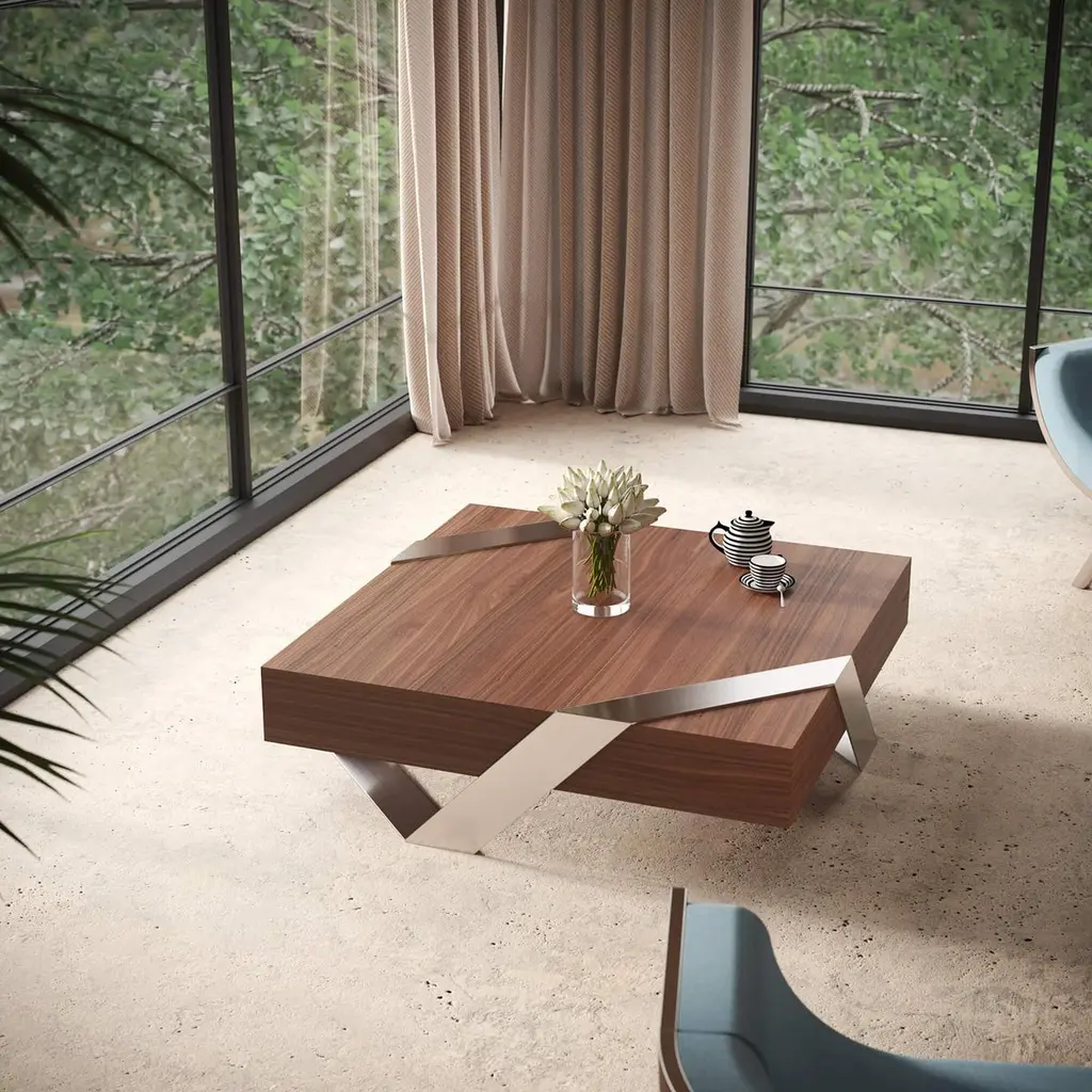 Modern Minimalist Square Center Coffee Table Tineo Wood Brushed Stainless Steel