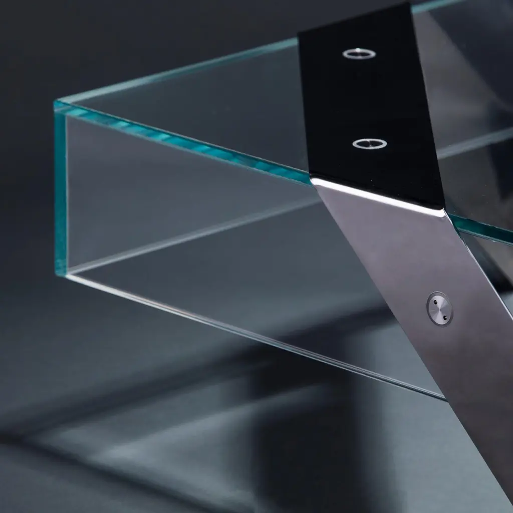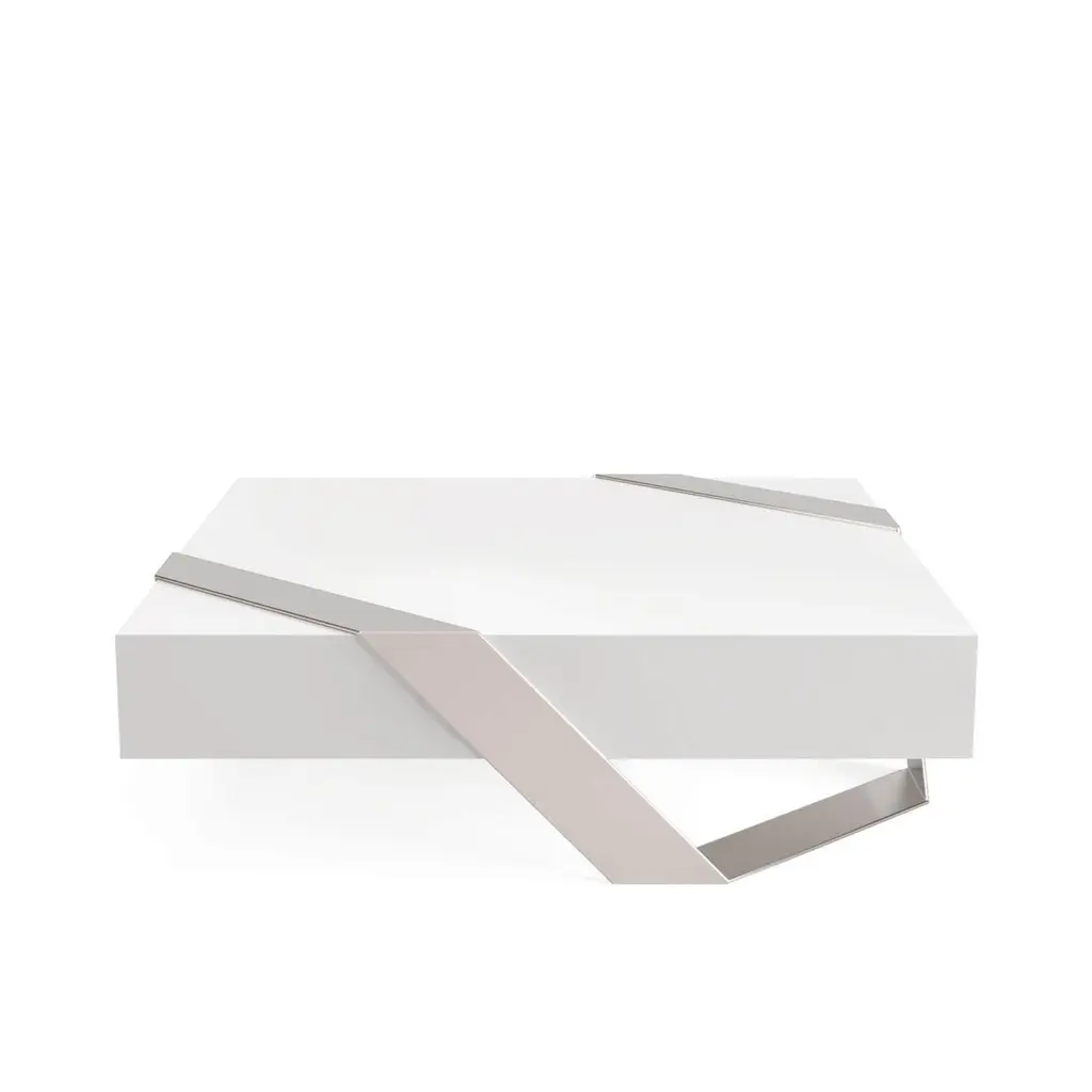Modern Minimalist Square Coffee Table Black Lacquer Brushed Stainless Steel