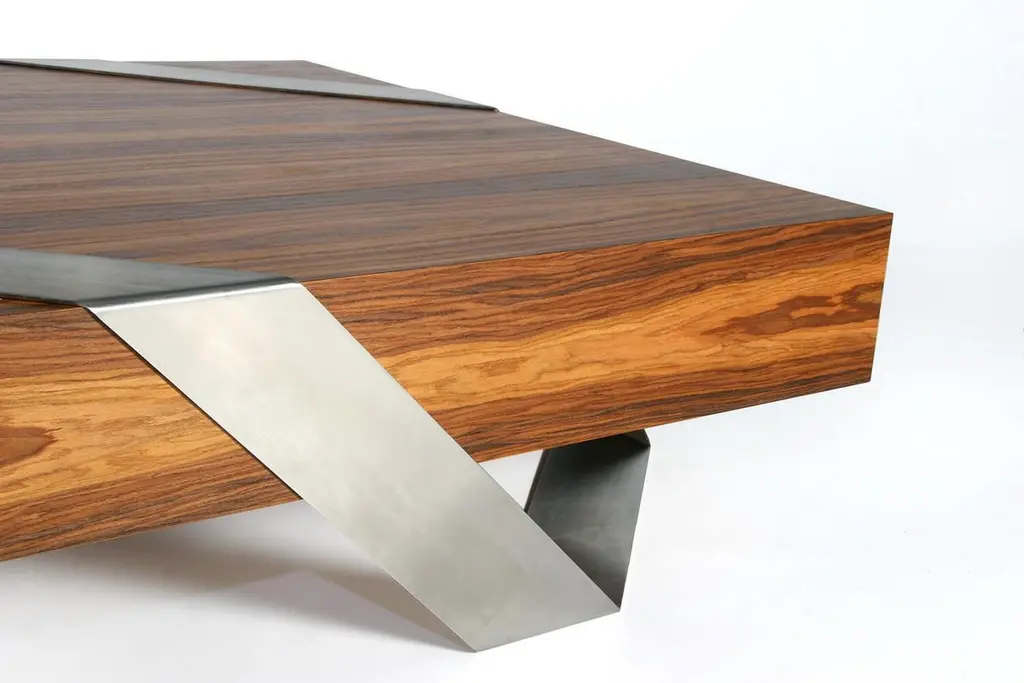 The "Gift Wrap 1st Movement Coffee Table" listed here is made in black lacquered wood and brushed stainless steel. We can also produce this in customised options: Tabletop: Another kind of wood (walnut, ebony, macassar, tineo, black oak, ironwood, oak, teak, rosewood); lacquered wood (any RAL colour); or tempered glass (white, black, green, transparent).Structure: Stainless steel (polished, brushed, or industrial chic); brass (polished, brushed, or industrial chic); copper (polished, brushed, or industrial chic); or lacquered steel (in any RAL colour). The "Industrial Chic" finish is handmade by the author, making every piece truly unique. Dimensions: Custom dimensions are available by request.You can try it in your space using Augmented Reality with your mobile phone (Gift Wrap Collection, available on our website).Assembled piece. It will be delivered in a wooden box packed in bubble wrap.This collection won an "A' Design Award" in the "Furniture, Decorative Items, and Homeware Design" category in 2016.This piece is entirely made in Portugal and manufactured artisanally. The author carefully executed or supervised every process step in a small workshop context.Labour of love from Portugal.Designer/Author - João Faria/Emotional Objects.Manufacturer - João Faria/Emotional Objects.At Emotional Objects, we don't follow trends or fashion. Instead, we create distinct and timeless objects with solid ideas and concepts. Every Emotional Object has a meaningful story behind it. Made to last for generations, we proudly see our objects as future furniture classics that will stand the test of time.Working in Portugal with the best artisans, Joao Faria's work is difficult to distinguish between functional and fine art. He uses the finest materials and techniques, but most importantly, he only makes pieces he would want for himself.Art Furniture, Unique, Tailored, Emotional, Truly Yours.