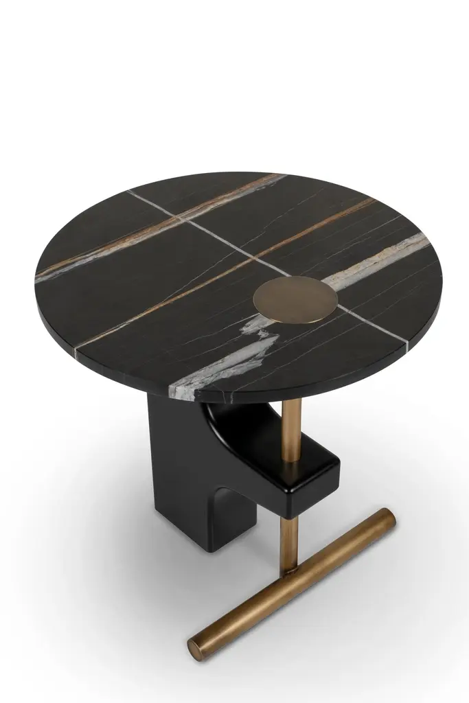 Modern Mó Coffee Table, Sahara Noir Marble Brass, Handmade Portugal Greenapple