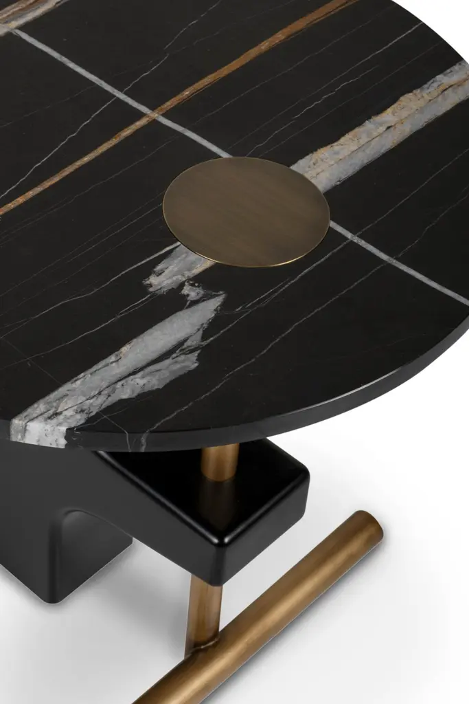Mó Coffee Table, Contemporary Collection, Handcrafted in Portugal - Europe by Greenapple.The Mó marble coffee table pays homage to the ancient celebrations during the summer solstice, a time when millstones held a sacred significance in the daily life. Serving as a symbol of these festivities, Mó gathers historical meaning within its unique design. Crafted in Sahara Noir marble and adorned with brass details, this marble coffee table distinctly embodies the concept of contemporary design combined with the roots of tradition.Mó Coffee Table Material CodesFI007 Black lacquer; satin finishST041 Sahara Noir marble; polishedME026 Dark oxidised brass; high-gloss finishFI112 Light gold bronze powder with a patina effect; satin finishHandcrafted in Portugal - Europe by GreenappleUnique by design, Crafted by peopleFounded in 2005 by Sérgio Rebola and Rute Martins, Greenapple designs and produces in-house luxury furniture for exclusive customers worldwide.Our own in-house production facility allows us to be obsessed with detail, and gives us the freedom to dedicate ourselves to the most demanding tailor-made and customised work. As Rute designs all the unique pieces, Sérgio assures the high-quality standards through the whole process - from design to production; from production to your home. Fine craftsmanship, whether perfected by experienced hands or state-of-the-art machinery is quintessential in delivering top quality experiences.