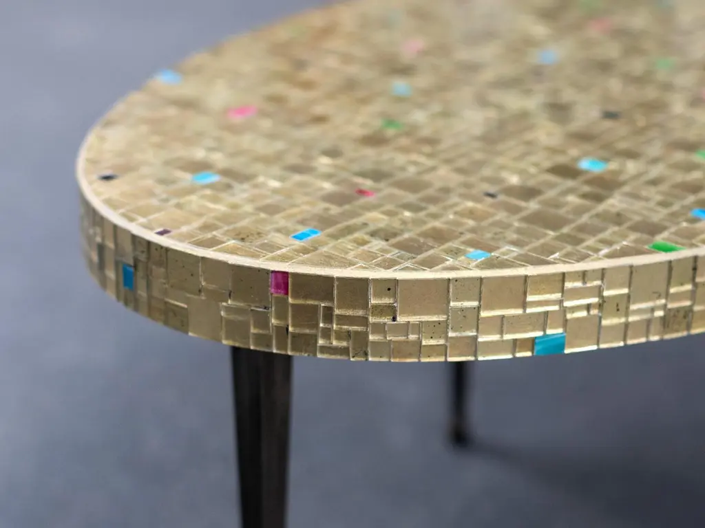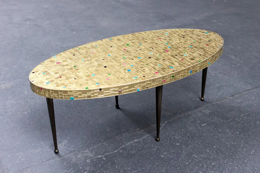 Modern Oval Moon Gold Mosaic Coffee Table With Metal Legs By Ercole Home