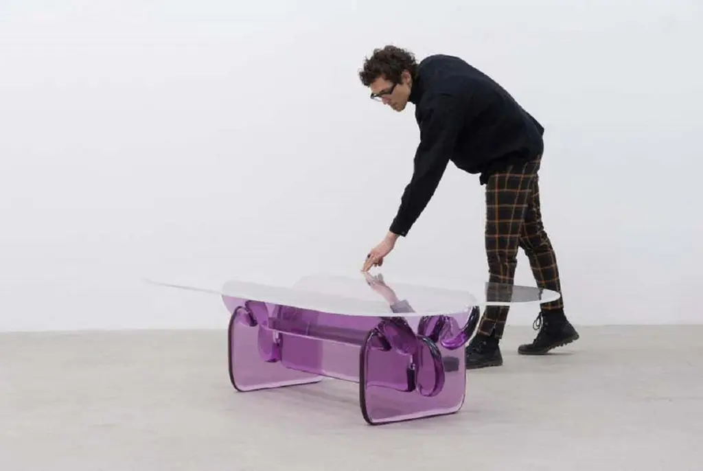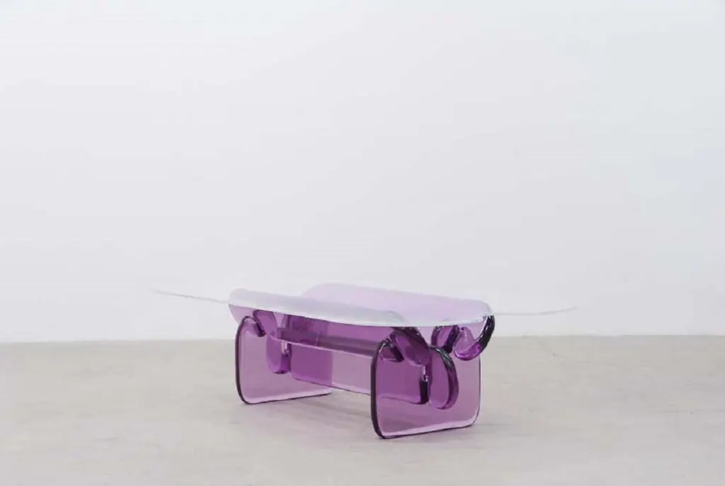 Modern Plump Table In Purple, Translucent Polyurethane Resin, By Ian Cochran