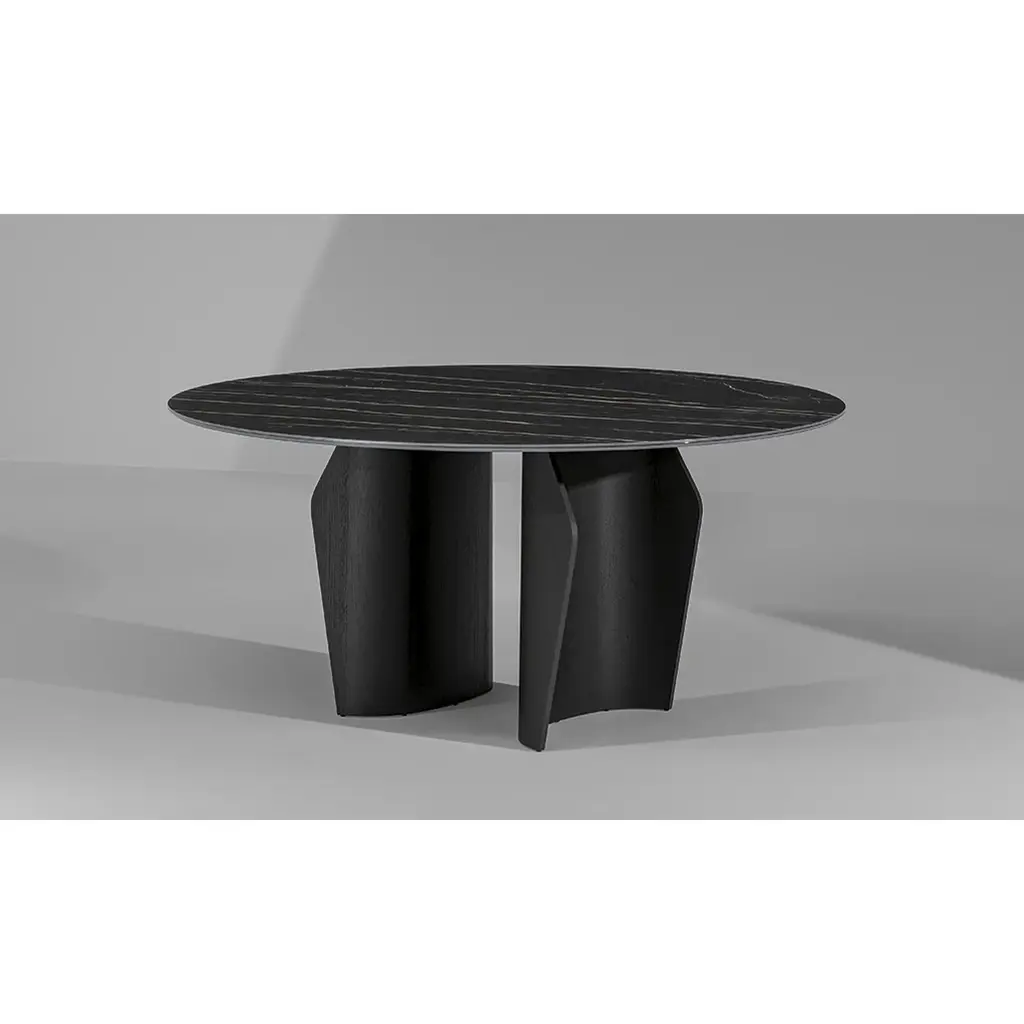 Flame's main features are its harmonious shapes and light, sinuous volumes. The top, which is visibly suspended, is fully usable thanks to the position of the double base designed to optimize the overall space. Form and function are perfectly expressed in this table: the extensive customization options allow you to arrange it according to your tastes, needs and the mood of the surrounding space. The top is available in a number of sophisticated finishes – from wood to ceramic and marble – and you can choose from various metal options for the base. A wooden base is also available for this modern living room table (Flame Wood).