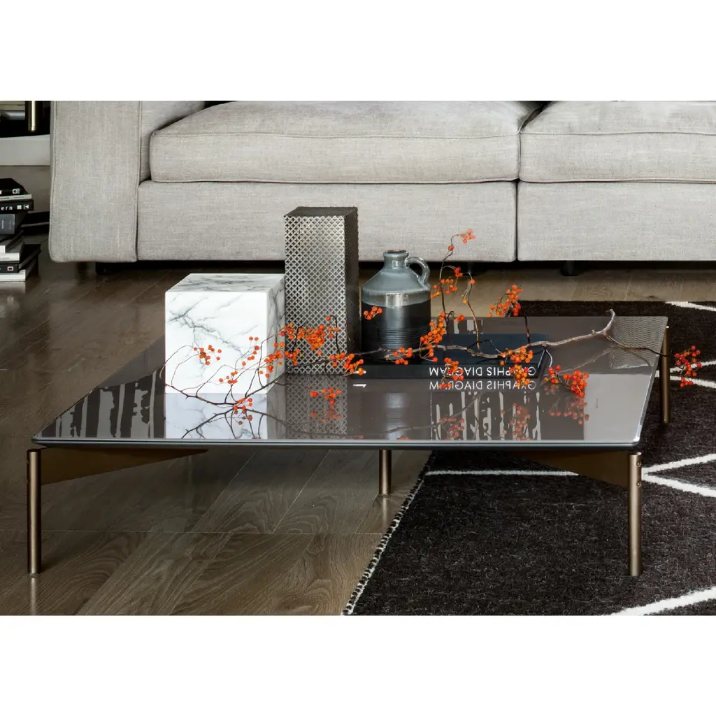 Elevate your living space with the sleek and playful Lema Cruise coffee table. Its modern, round design features a metal base and a sheet of glass with a 1mm profile, crafted with a blend of hi-tech precision and true artistry. Enjoy the perfect balance of form and function with this luxurious addition to your home.
