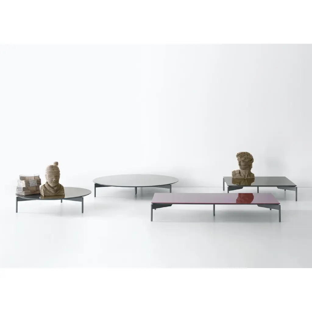 Elevate your living space with the sleek and playful Lema Cruise coffee table. Its modern, round design features a metal base and a sheet of glass with a 1mm profile, crafted with a blend of hi-tech precision and true artistry. Enjoy the perfect balance of form and function with this luxurious addition to your home.