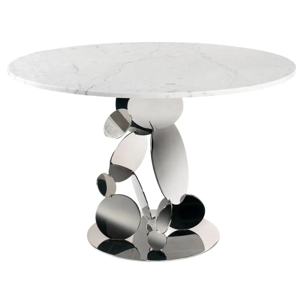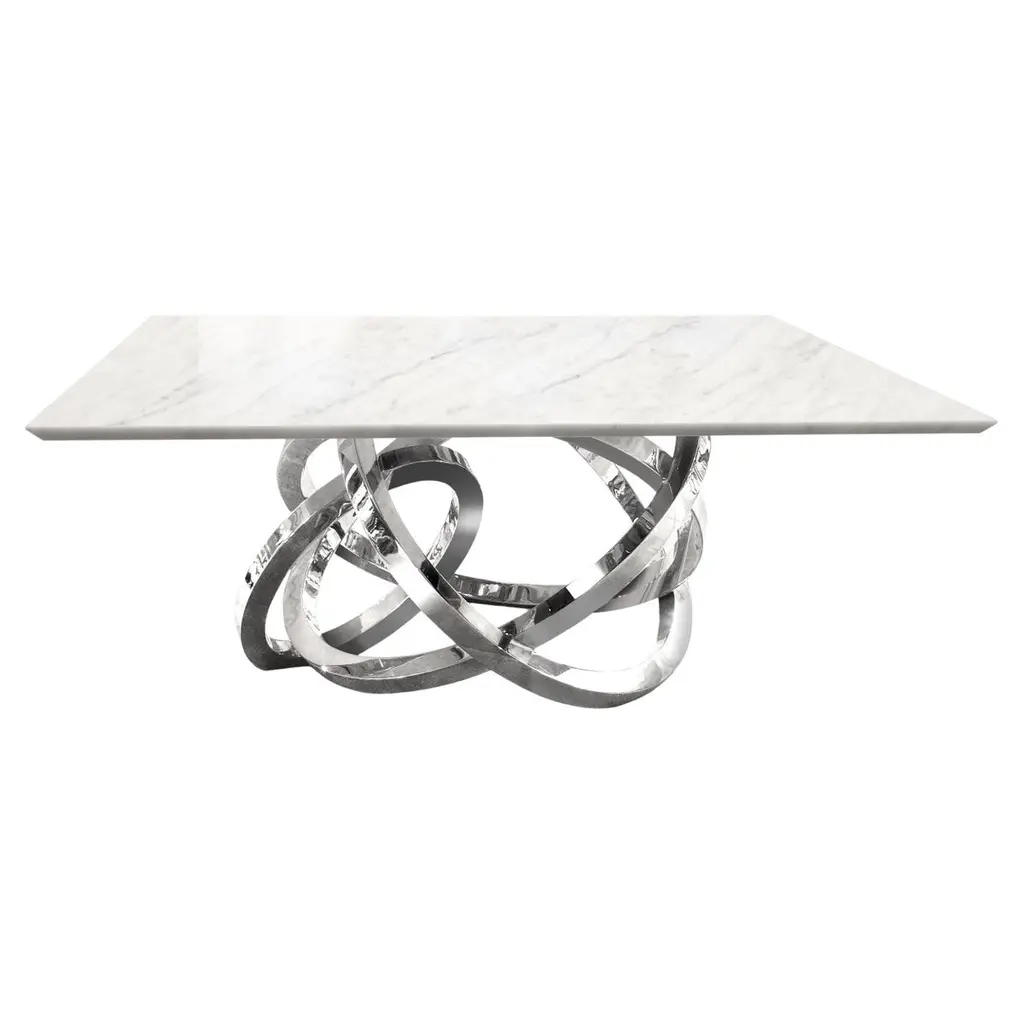 CROWN ROYAL is a coffee table with a stainless steel base structure similar to an exoskeleton and a marble top.? This coffee table exudes luxury and excels through its smooth finishes which give testimony to the diligent craftsmanship.As shown Metal: Canna De Fucile Lucido Top: Marble Bianco Carrara.Handcrafted in Italy.