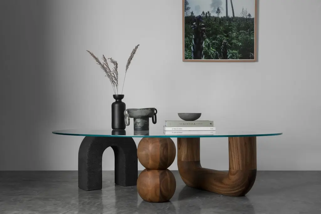 The Rosedal table is a sculptural coffee table assembled by three pieces. Two hand-shaped in Huanacaxtle solid wood and the other in volcanic stone; the top in clear glass lays down above, framing them.can be sold without the glass cover (only the bases), to get the price, please send us a message. It is recommended to be placed on level surfacesIn case of placing the table on a mat or carpet, it must have a thickness no greater than 1 cm.Bases only, glass top not included Technical information about the glass is provided to the customer. The table can be modified in dimensions. Consult with the supplierWe are Comité de Proyectos, an interior and furniture design studio from Mexico City. We produce contemporary Mexican pieces with local craftsmanship, each one of them is monitored in detail from someone of our design team to ensure the highest quality. We love what we do, you'll love it too.We are a small company from mexico city, we do not have stock, all our products are handmade, therefore there are no returns or exchanges.
