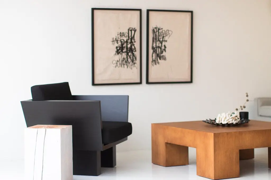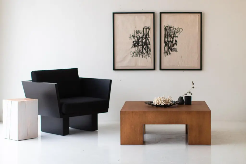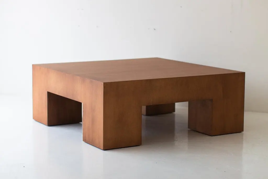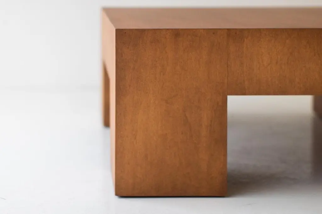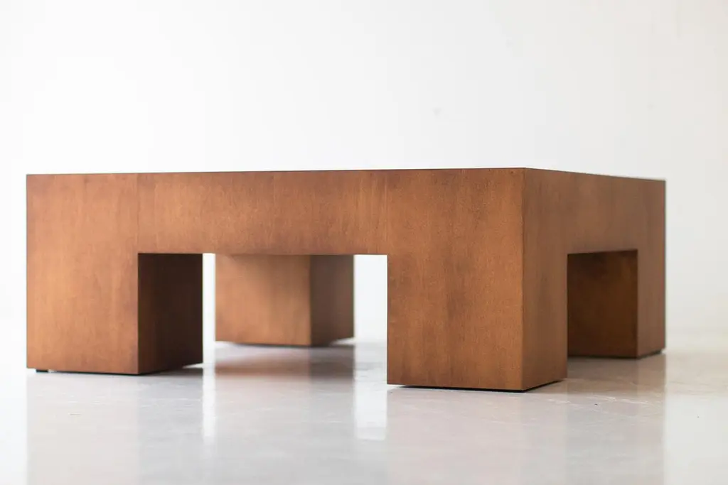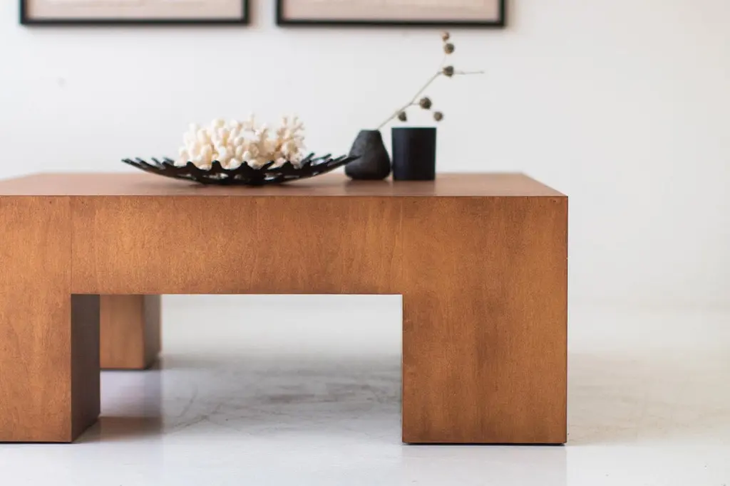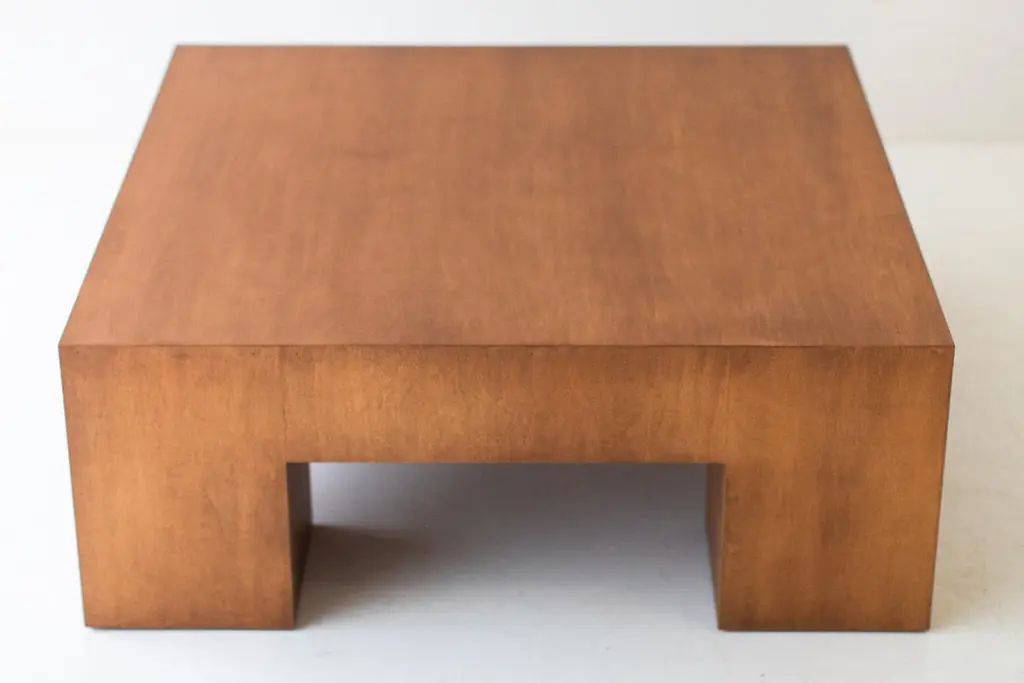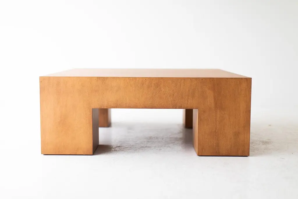 This Modern Coffee Table is made in the heart of Ohio with locally sourced wood. Each table is hand-made with mitered corners from white oak veneer and finished with a beautiful matte commercial-grade finish. These are made to order so you can customize finish color, size, etc. This table is cool and modern with a big presence. We absolutely love it!specsPeriod/Model: New; Organic ModernSpecs: White Oak Plywood Veneer, Commercial grade finish "caramel" finishCustomizable: Yes! It's what we do :)DimensionsH: 15"W: 40"L: 40".