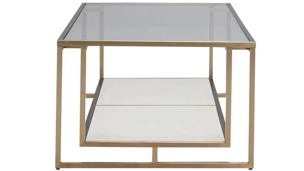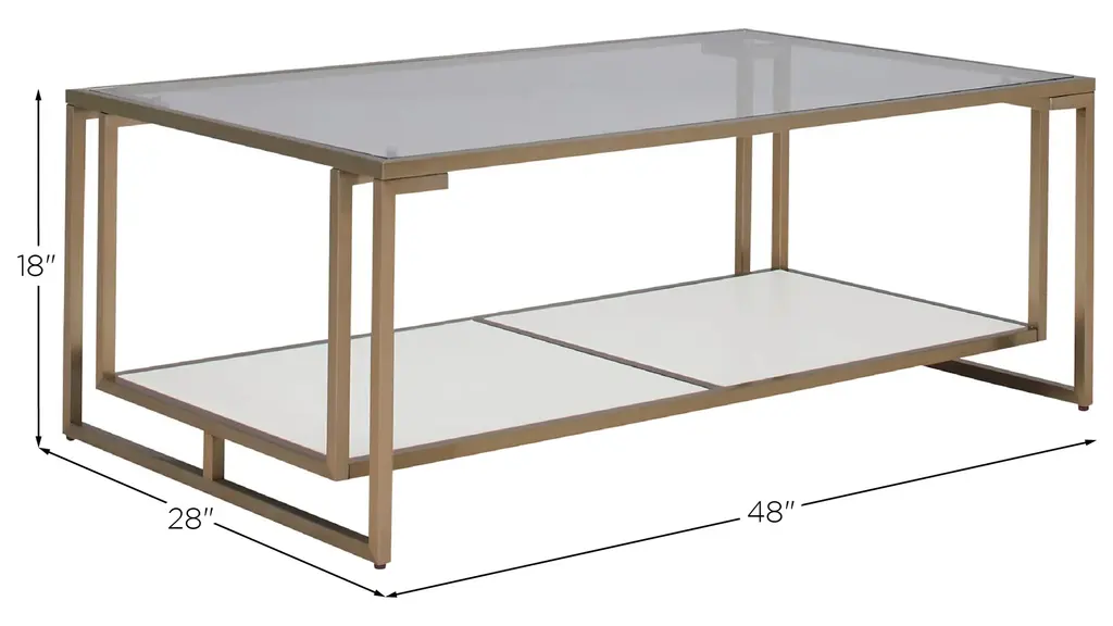 A dramatic and alluring accent piece with a touch of art deco flair, the Monroe cocktail table keeps your space looking open and light. The interlocking antique brass frame is beautiful and sturdy, and the fixed lower shelf adds function to this statement of style.