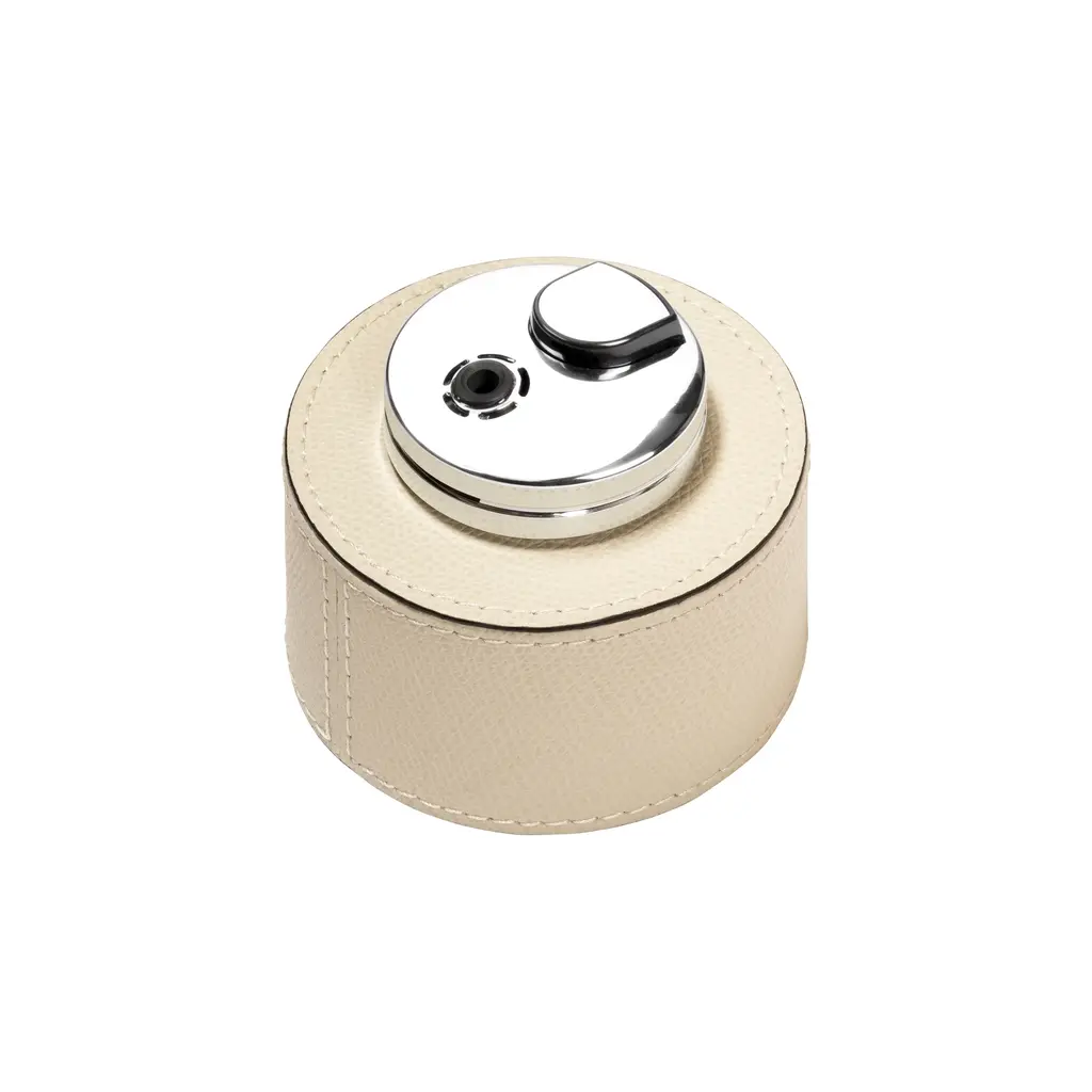Add a touch of texture and refined function to your space with the Montego Table Lighter from Giobagnara. Handcrafted in Italy, its classic form is meticulously wrapped in genuine shagreen leather, renowned for its distinctive pebbled texture and durability. It features a reliable, refillable piezo igniter with a polished chrome finish, making it a sophisticated statement piece for any coffee table or study with its timeless elegance and effortless performance. Highlights: