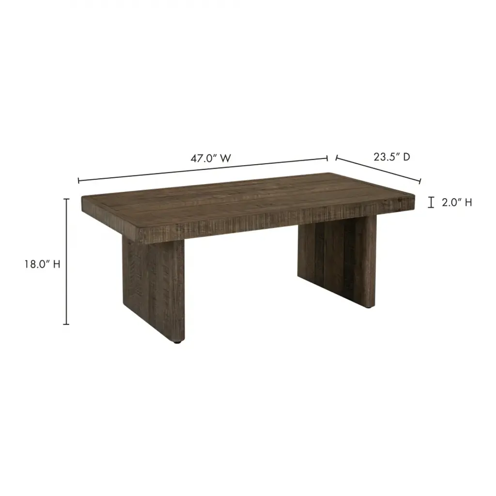 With a nod to the natural, bring earthy, on-trend rustic style to your living space with the Monterey coffee table. Just the right size for large or small-scale areas, this table features richly finished pinewood with a matte, driftwood-like finish and a solid-panel base design for fluidity. Idyllic, warming contrast with clean lines and a minimalist shape, this table brings ultimate, simplistic appeal whether you're designing for luxe or lounge.