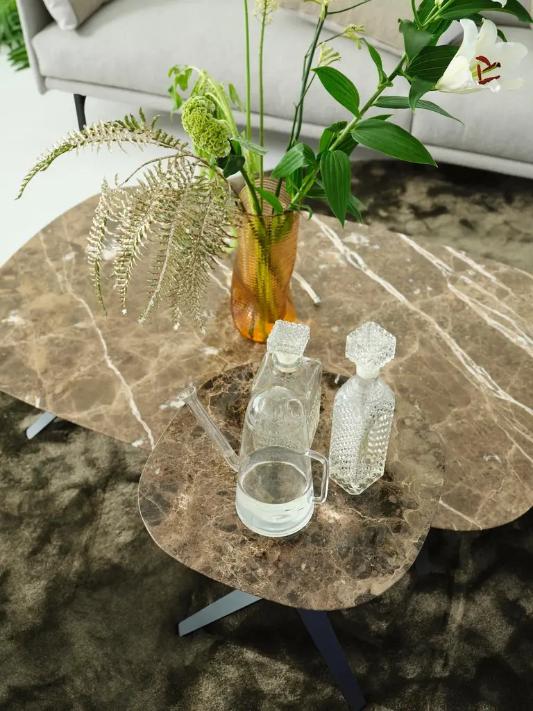 Geert Koster • 2018 • Coffee table The Elegant Table LineGet creative with shape, colour and height. The side andcoffee tables invite you to create decorative compositions.Push them together. Draw them apart. Or let the simplicityof a single design be the centre of attention. Thanks to thethree-legged base of the tables in an array of colours tochoose from, the overall effect is always one of harmony.Bold and yet elegant. Modern yet timeless. The Danteseries never fails to inspire.DescriptionTOPSolid oak: natural matt lacquered, white oiled or whitewashlacqueredSolid ash: white stained or black carbonSolid walnut: matt lacqueredMarble: arebescato (white), marron emperador (brown) ofverde alpi (green)Granite: nero bernini (black)Versions in solid oak (natural matt lacquered and whitewashlacquered) and solid ash (white stained and black carbon) canbe brushed at extra charge.FRAMEMatt black or brown metallic powdercoatedThe square and triangular tables are available in 2 heights,namely 35 cm and 50 cm. The prices for these are the same.