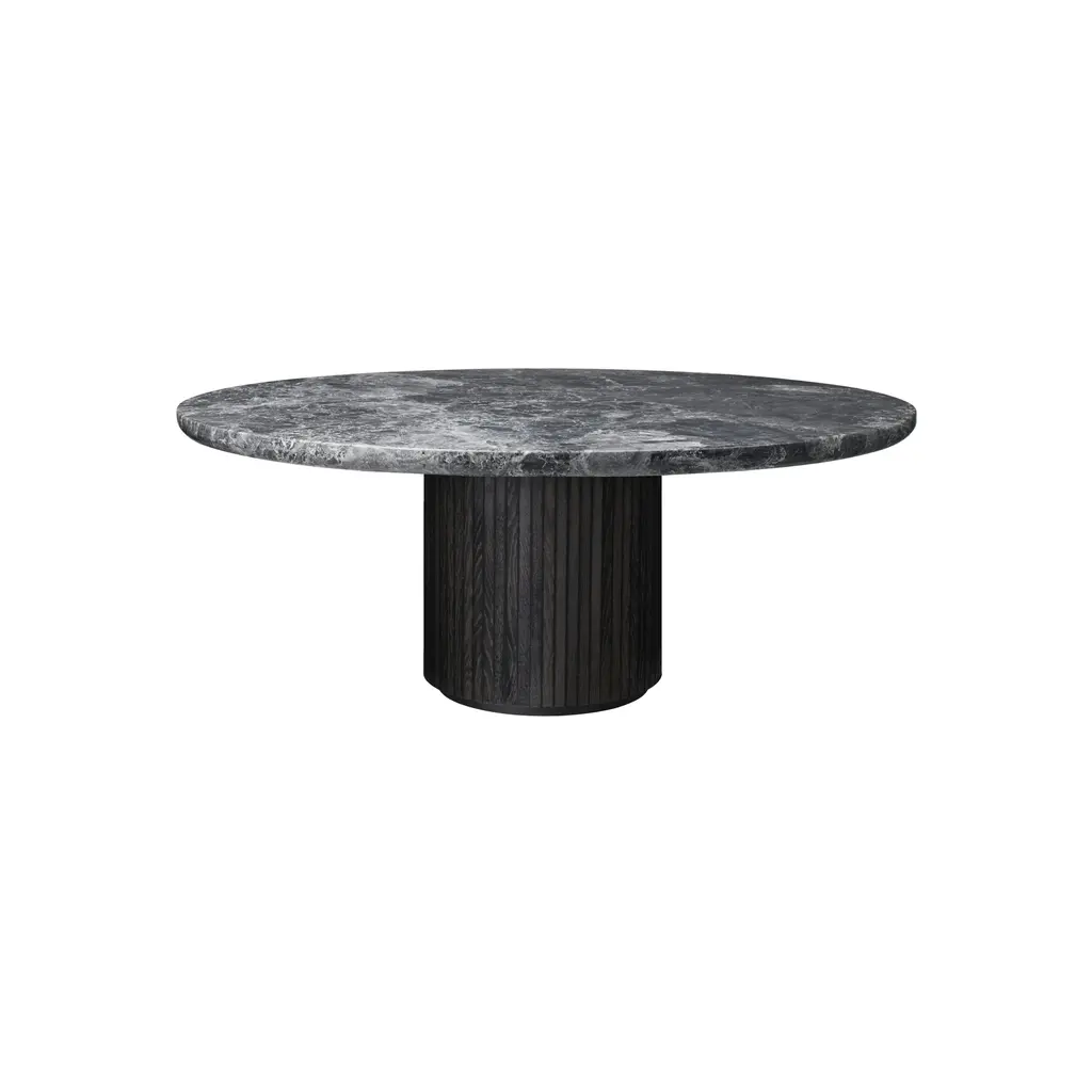 With a veneer oak base in a black stained, lacquered finish and a sumptuous grey Emperador marble tabletop, Gubi’s coffee table series reaches its apogee. Offered in a choice of 3 sizes, Moon’s considerable presence originates in the interplay between the round stone tabletop, each with its one-of-a-kind patterning, and the beveled wood surface of the supporting pedestal. Ultimately, Space Copenhagen’s design embodies clear references to traditional Danish carpentry, interpreted with an updated sensibility to suit both domestic and public environs.