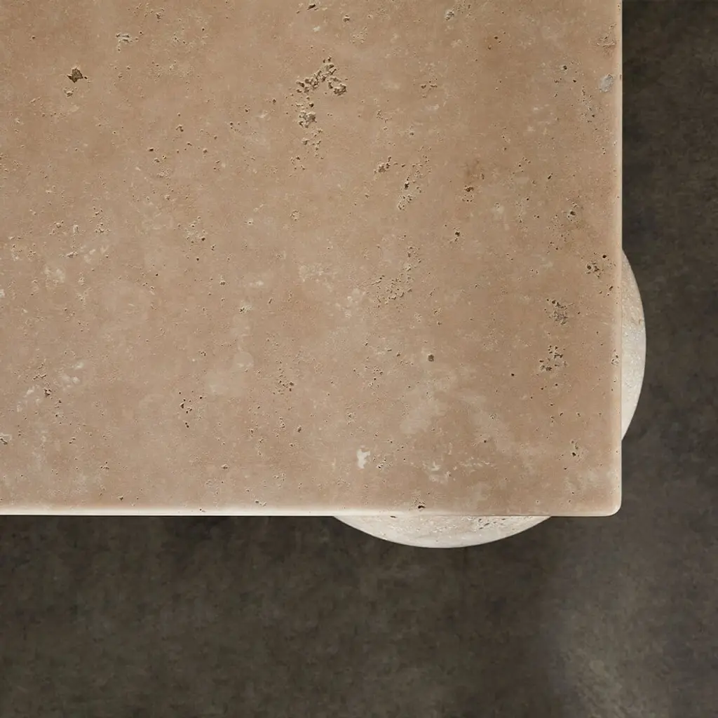 With its bold use of geometric shapes, the Morro Square Coffee Table is a playful exploration of form and function. Available in Travertine, Grey Rainbow, Natural Oak, Bleached Oak and Ebonized Oak. Hand crafted in Los Angeles.