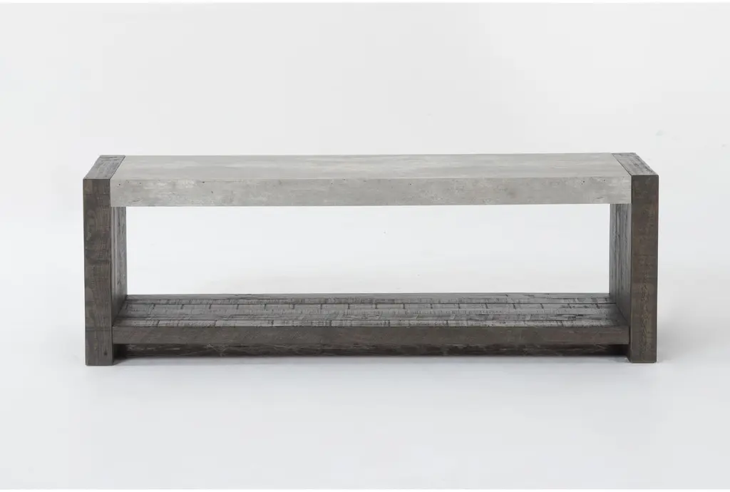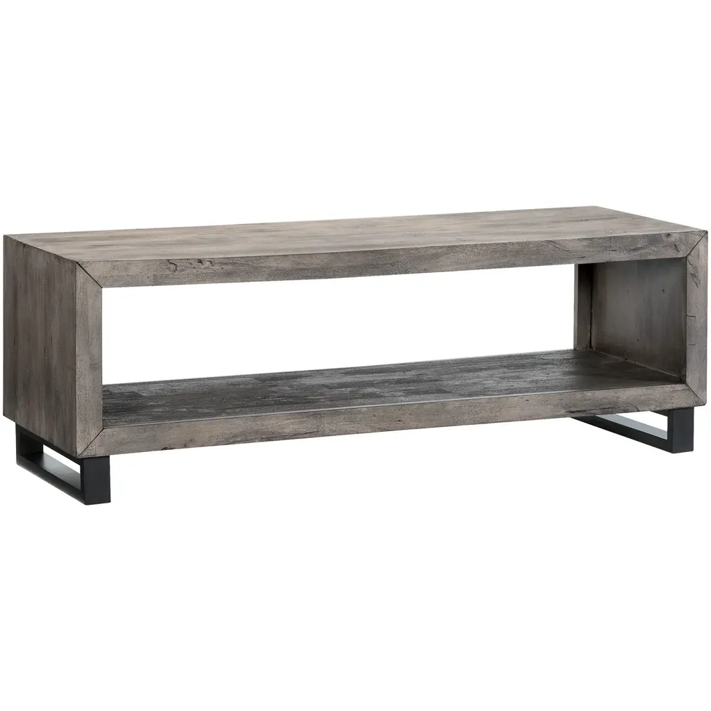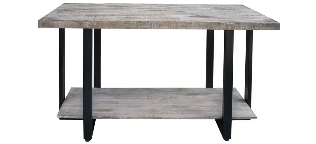 Make a statement with the bold look of the Mulholland Drive cocktail table. Constructed of solid wood with a dramatic distressed finish, this eye-catching coffee table is reminiscent of architectural elements or modernist sculpture, making it ideal for contemporary décor. Fill the open bottom shelf with coffee table books or your favorite large decorative items. Add other pieces from the Mulholland Drive collection for a sophisticated modern living room.