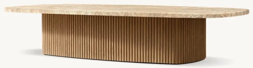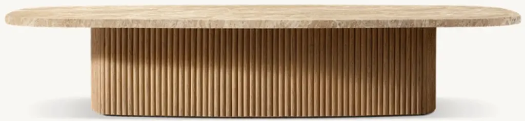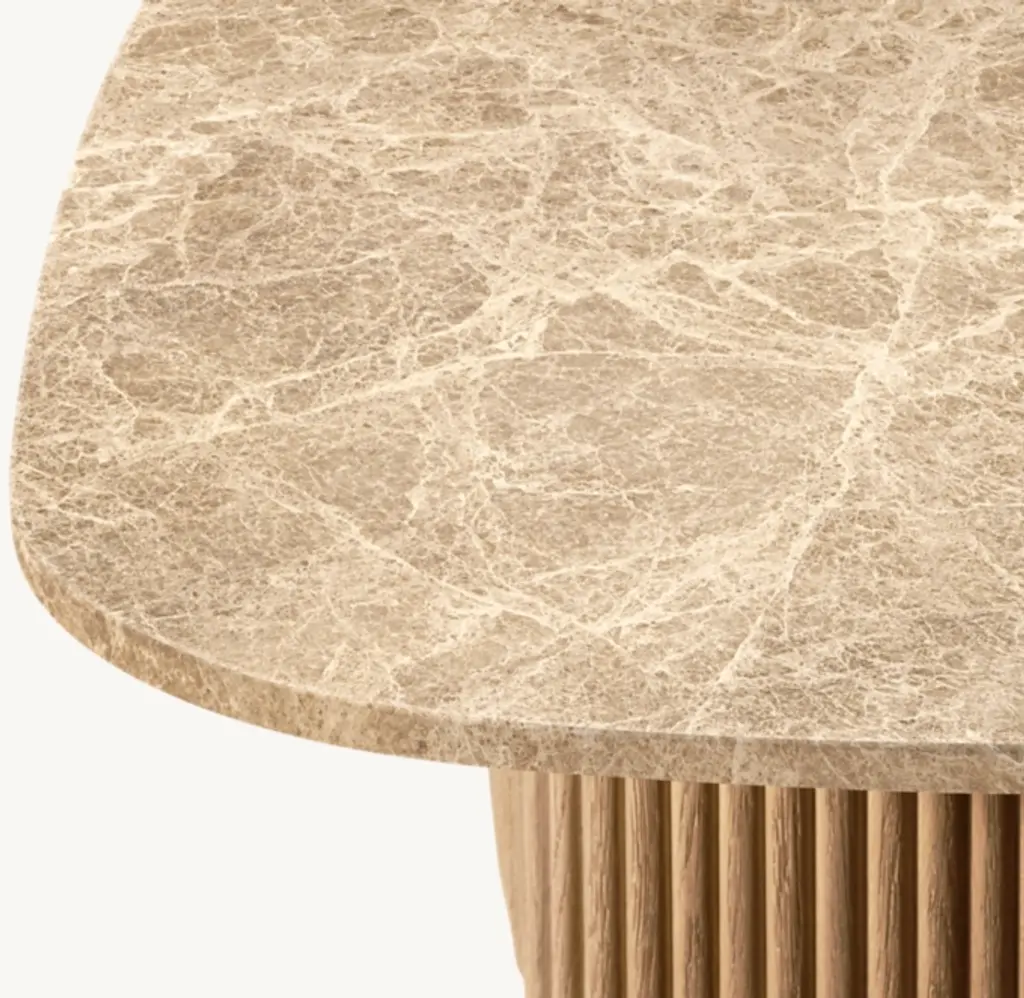 Defined by individually applied reeds of wire-brushed solid American white oak, Mulholland is the creation of celebrated design team Thomas Bina and Ronald Sasson. The collection features radius corners that curve around the side for an uninterrupted, fluid silhouette. Crafted of Emperador marble, the top is replete with rich veining and striking color contrasts that make each piece unique. SHOP THE ENTIRE COLLECTIONEXPLORE ALL REEDED COLLECTIONS