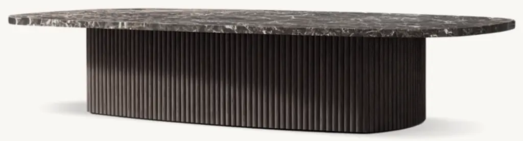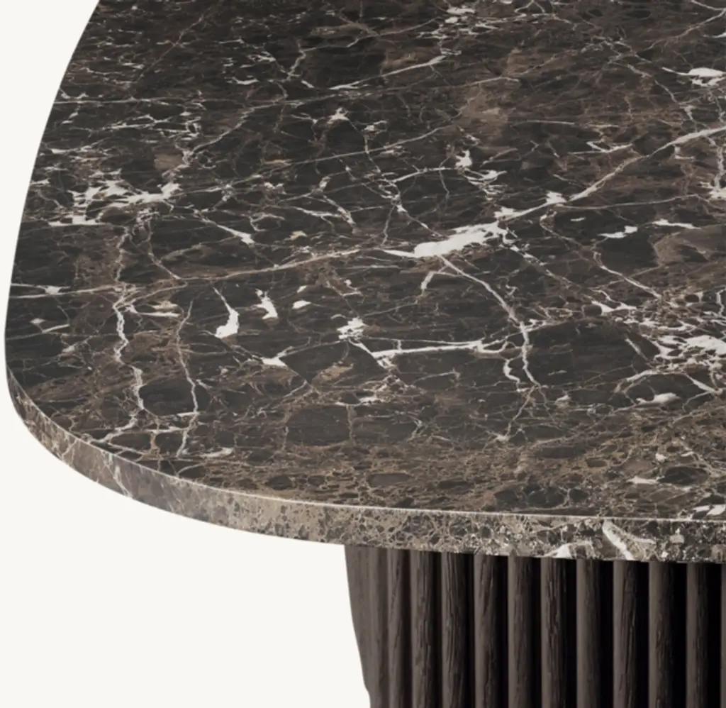 Defined by individually applied reeds of wire-brushed solid American white oak, Mulholland is the creation of celebrated design team Thomas Bina and Ronald Sasson. The collection features radius corners that curve around the side for an uninterrupted, fluid silhouette. Crafted of Emperador marble, the top is replete with rich veining and striking color contrasts that make each piece unique. SHOP THE ENTIRE COLLECTIONEXPLORE ALL REEDED COLLECTIONS