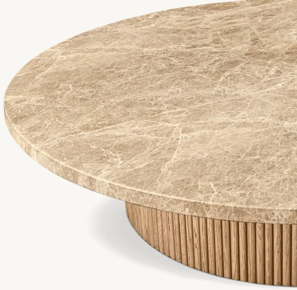 Defined by individually applied reeds of wire-brushed solid American white oak, Mulholland is the creation of celebrated design team Thomas Bina and Ronald Sasson. The collection features radius corners that curve around the side for an uninterrupted, fluid silhouette. Crafted of Emperador marble, the top is replete with rich veining and striking color contrasts that make each piece unique. SHOP THE ENTIRE COLLECTIONEXPLORE ALL REEDED COLLECTIONS