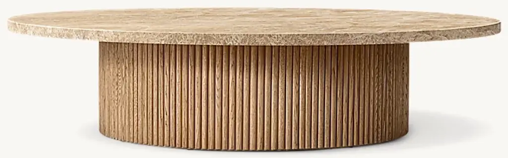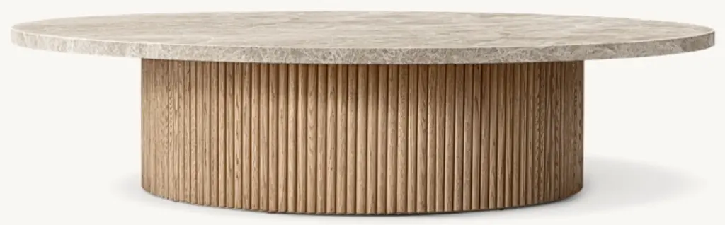 Defined by individually applied reeds of wire-brushed solid American white oak, Mulholland is the creation of celebrated design team Thomas Bina and Ronald Sasson. The collection features radius corners that curve around the side for an uninterrupted, fluid silhouette. Crafted of Emperador marble, the top is replete with rich veining and striking color contrasts that make each piece unique. SHOP THE ENTIRE COLLECTIONEXPLORE ALL REEDED COLLECTIONS
