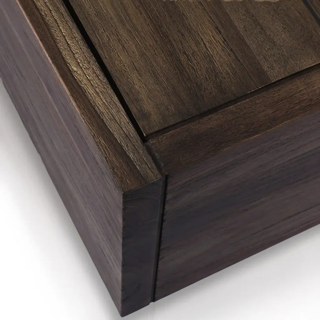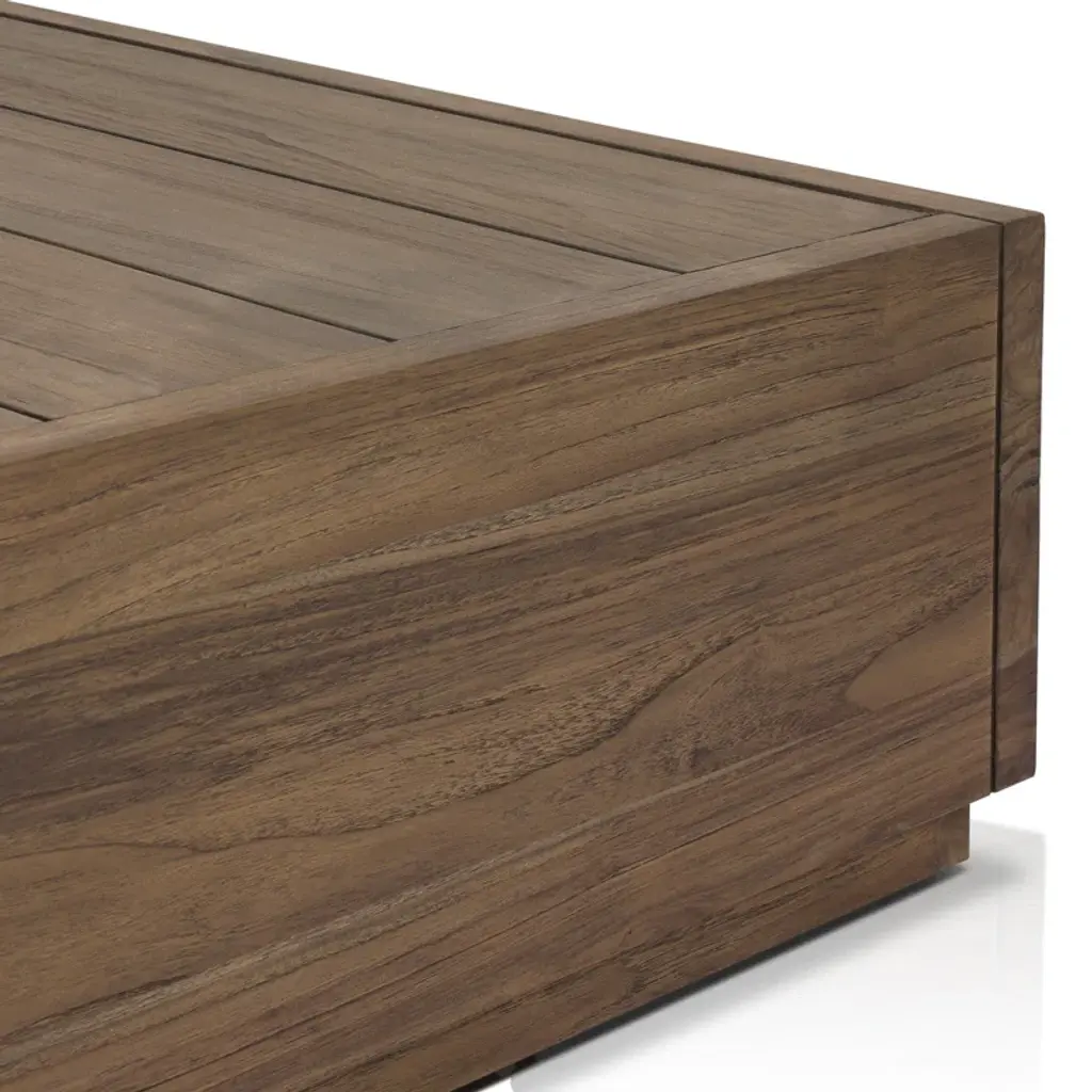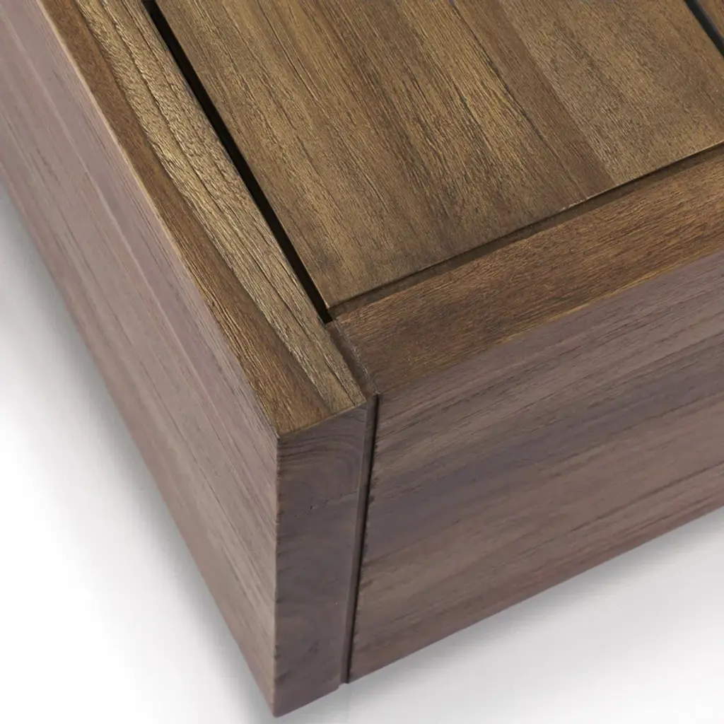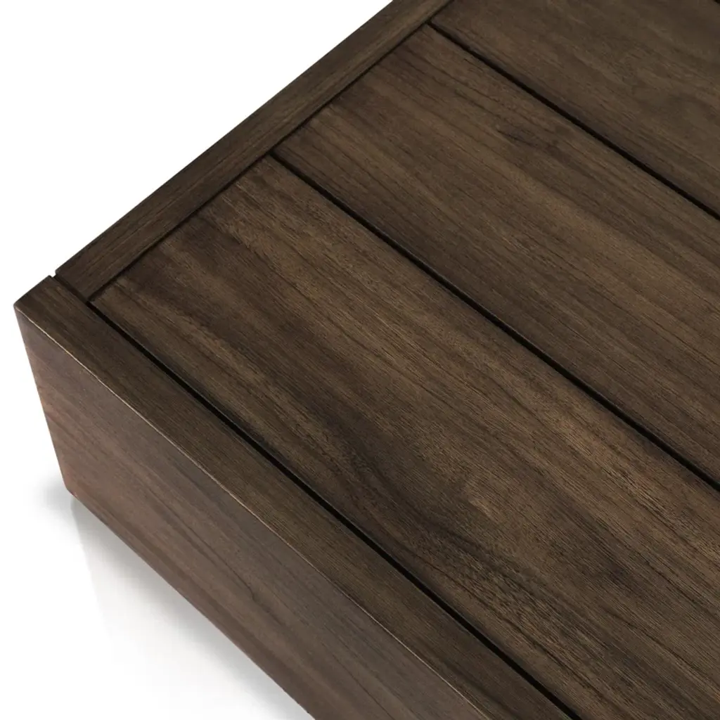 A simple plinth-style outdoor coffee table made of FSC (r)-certified teak, complemented with slatting on top to mix with any style — from modern to classic. Cover or store indoors during inclement weather and when not in use.
