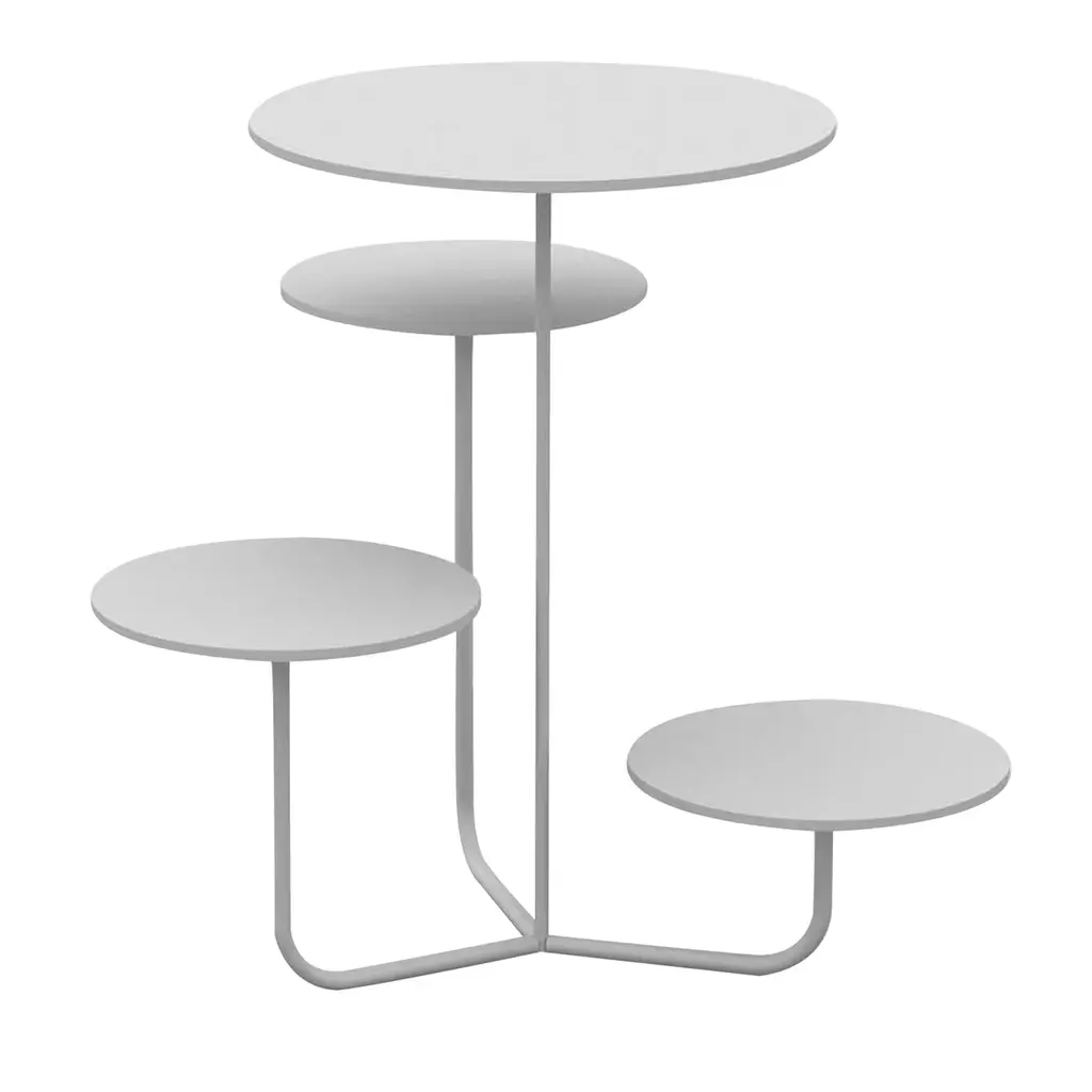 Ideal for stylishly placing a glacette alongside refined wine glasses, this coffee table pairs functionality and visual appeal. The airy structure fashioned of anthracite-lacquered metal consists of a semi-cylindric column with a shelf onto which sits a round top pierced by a streamlined leg that offers structural support while raising an extra, smaller, circular top. Please contact the Concierge for optional lacquers and pricing of the marble variants.